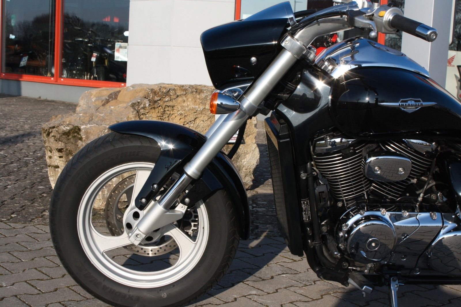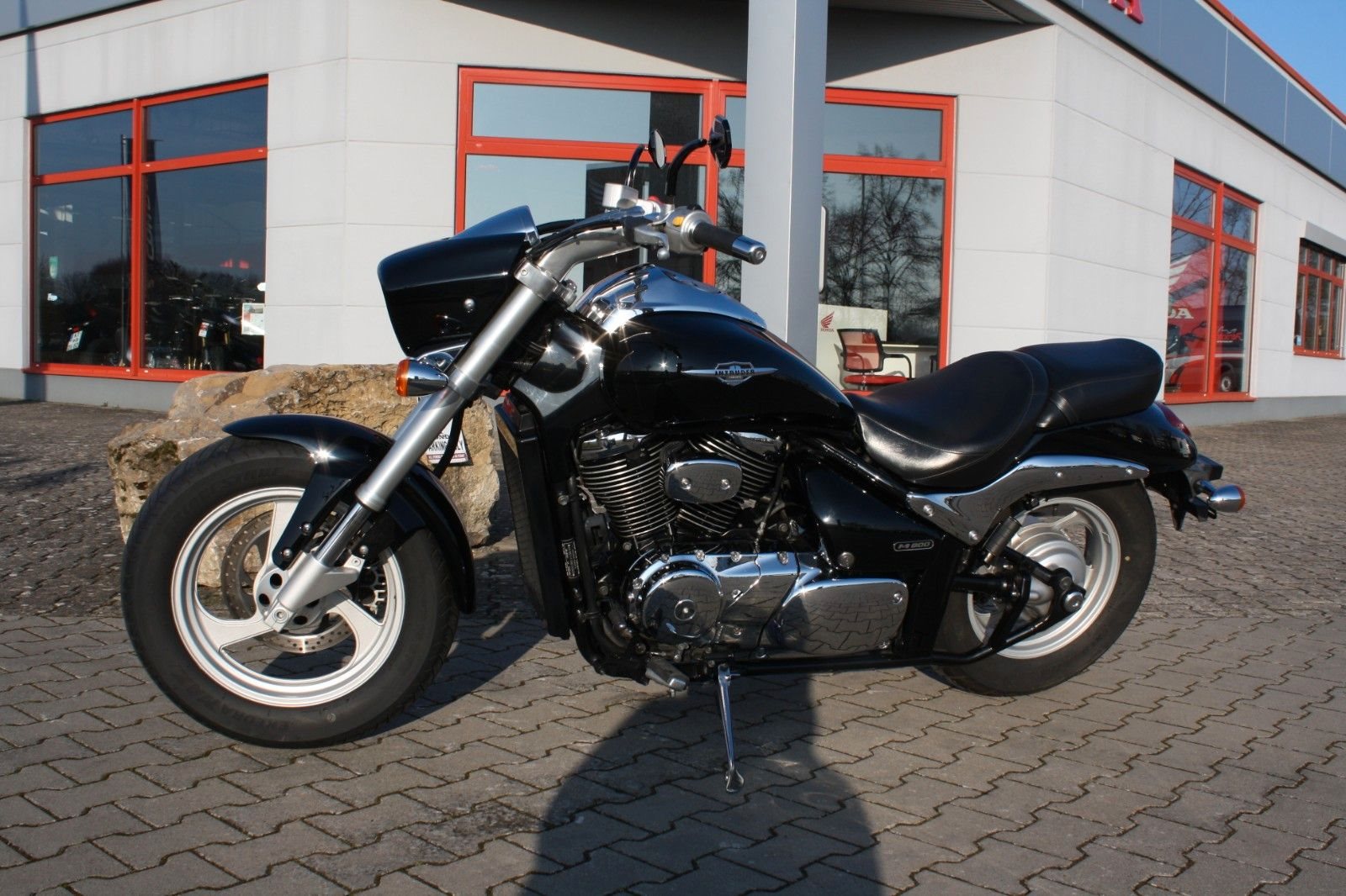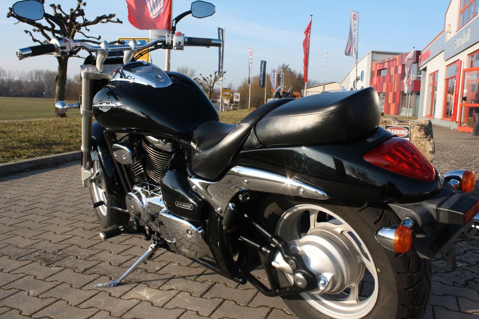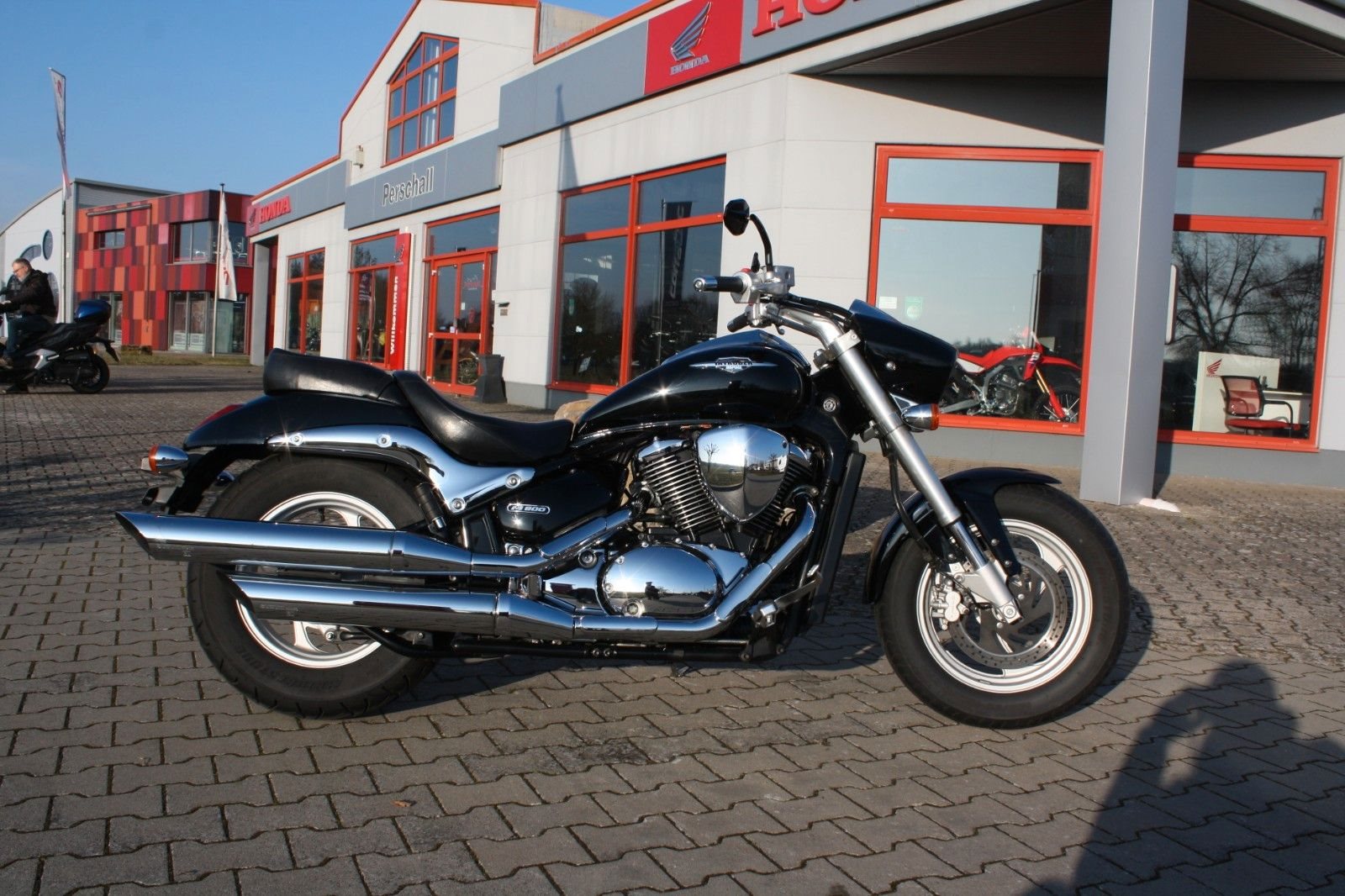 Cruiser mit Stil - die Suzuki M800 Marauder in Schwarz. Das Motorrad befindet sich im unverbastelten Originalzustand; lediglich ein paar Spiegel von Highsider wurden montiert.
