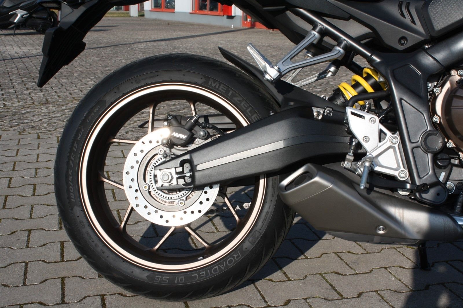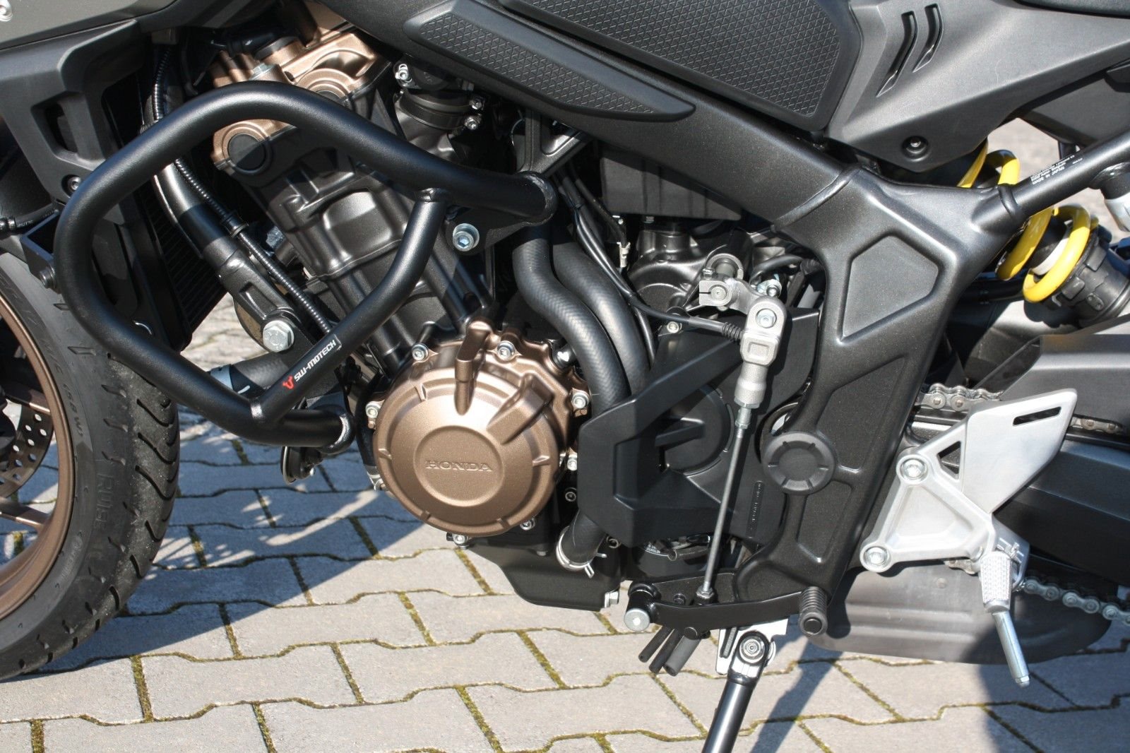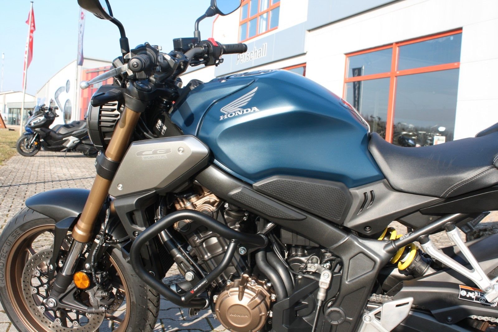 Ausstattungstechnisch verfügt die CB650R über einen Motorschutzbügel, einen Quickshifter (Schaltassistent) und einen Kühlerschutz. Alle Verschleißteile sind in tadellosem Zustand, und der Jahreskundendienst wurde frisch durchgeführt.