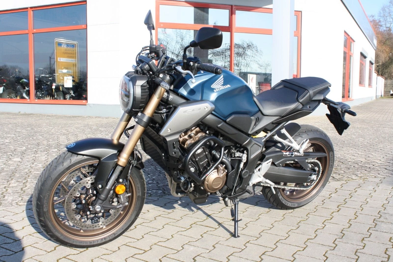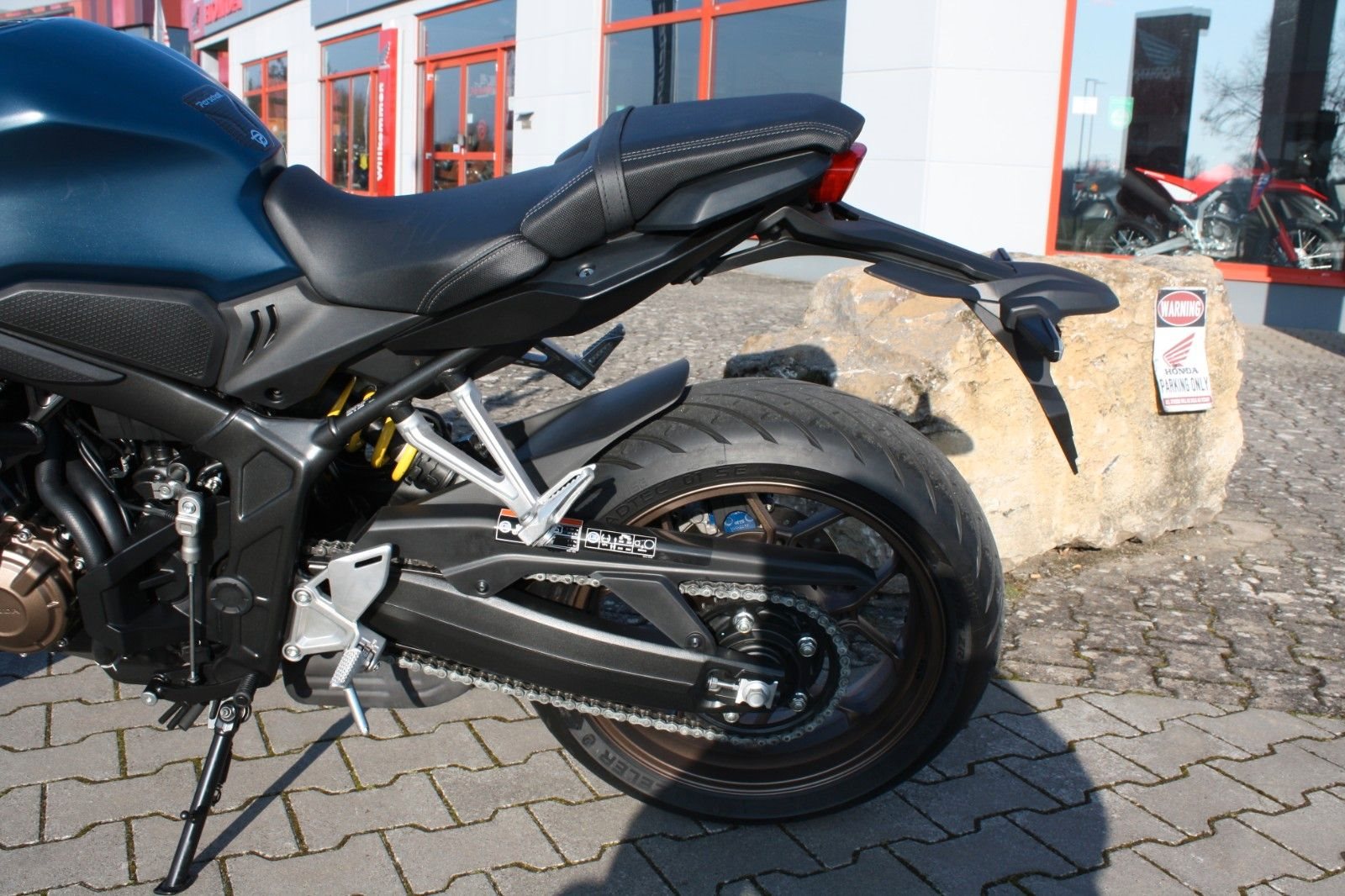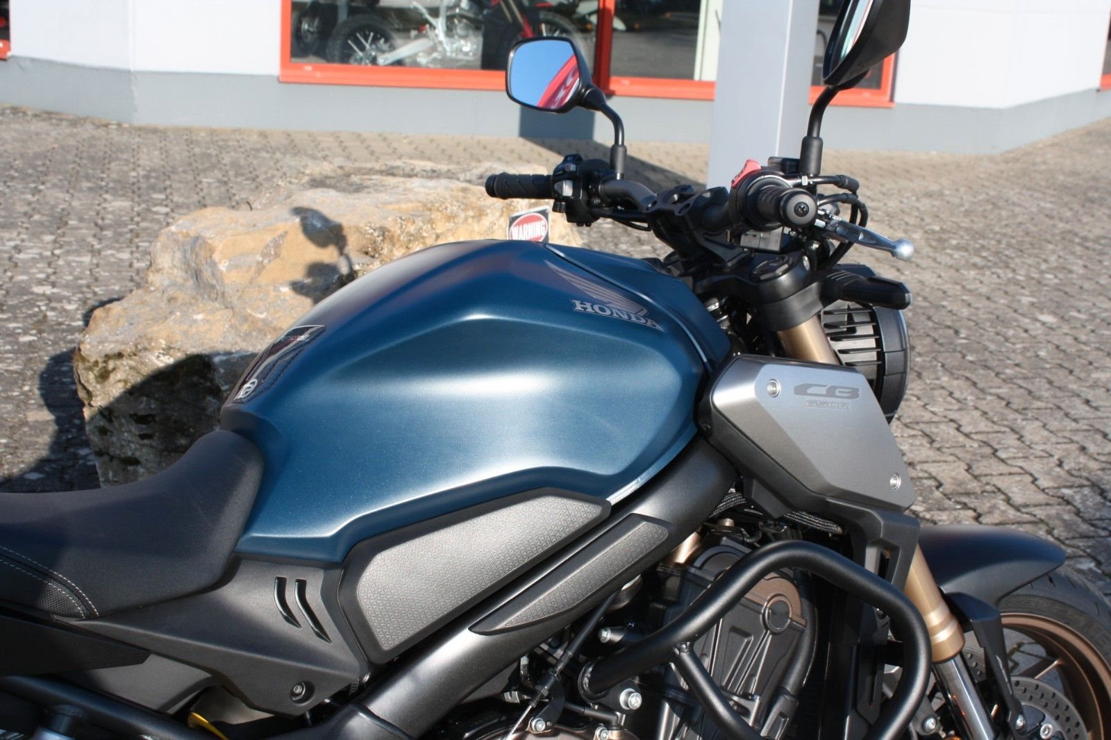 Elegantes Naked Bike in Matt Jeans Blue Metallic - die Honda CB650R aus erster Hand. Das Motorrad wurde von Beginn an in unserer Werkstatt scheckheftgepflegt und stammt direkt aus unserer Neuauslieferung an den Vorbesitzer, sodass wir es praktisch von Anfang an kennen.