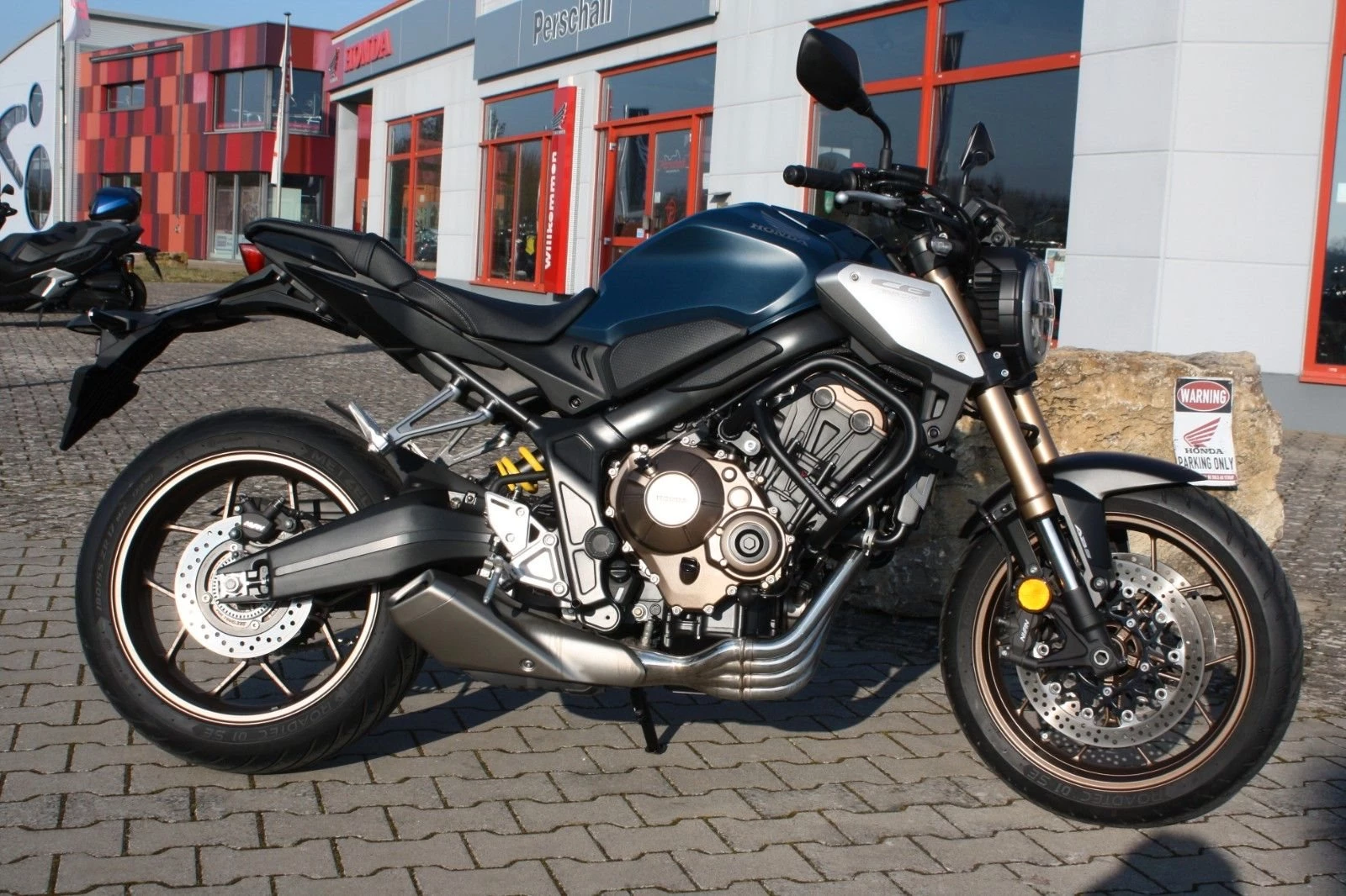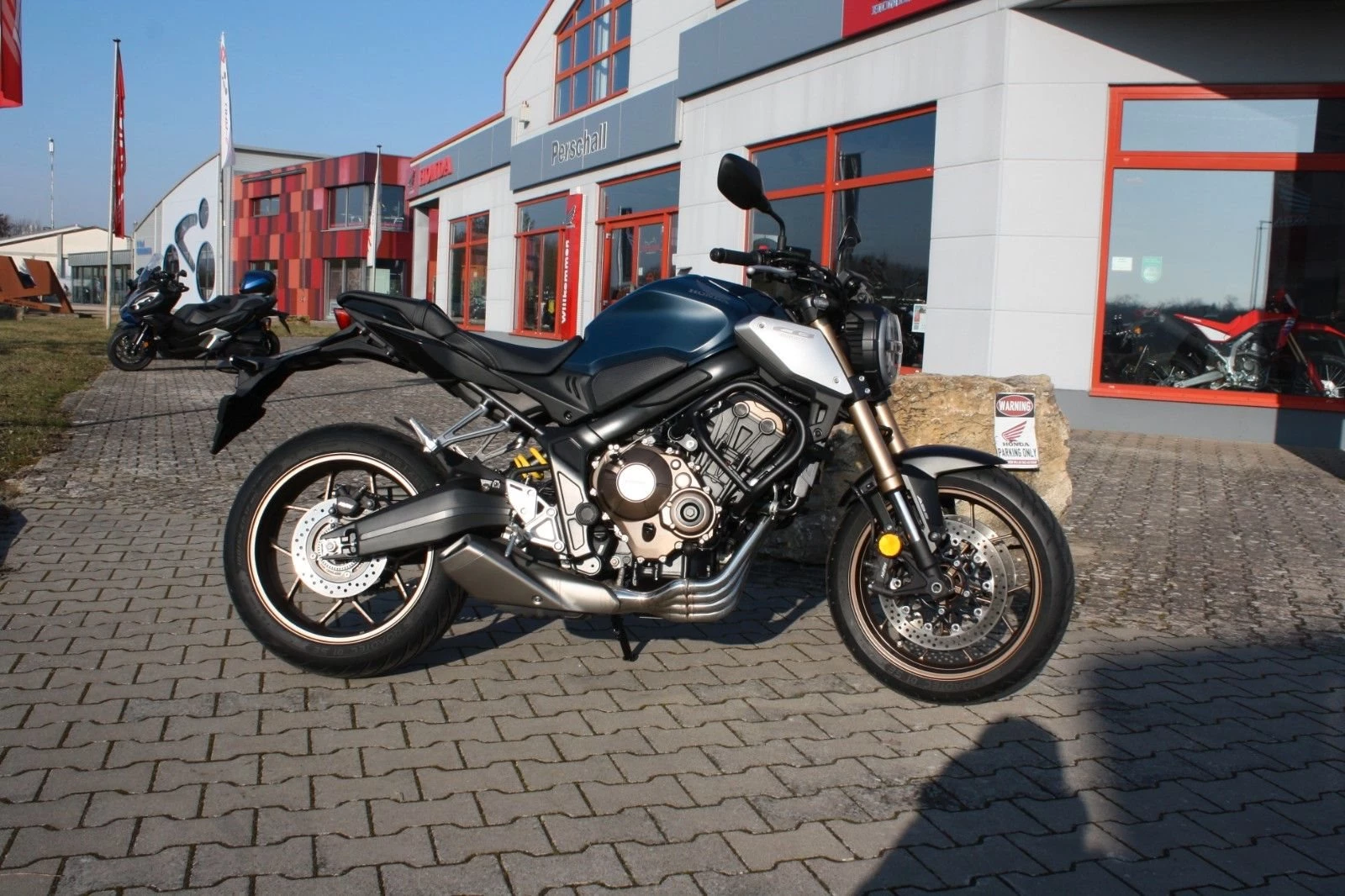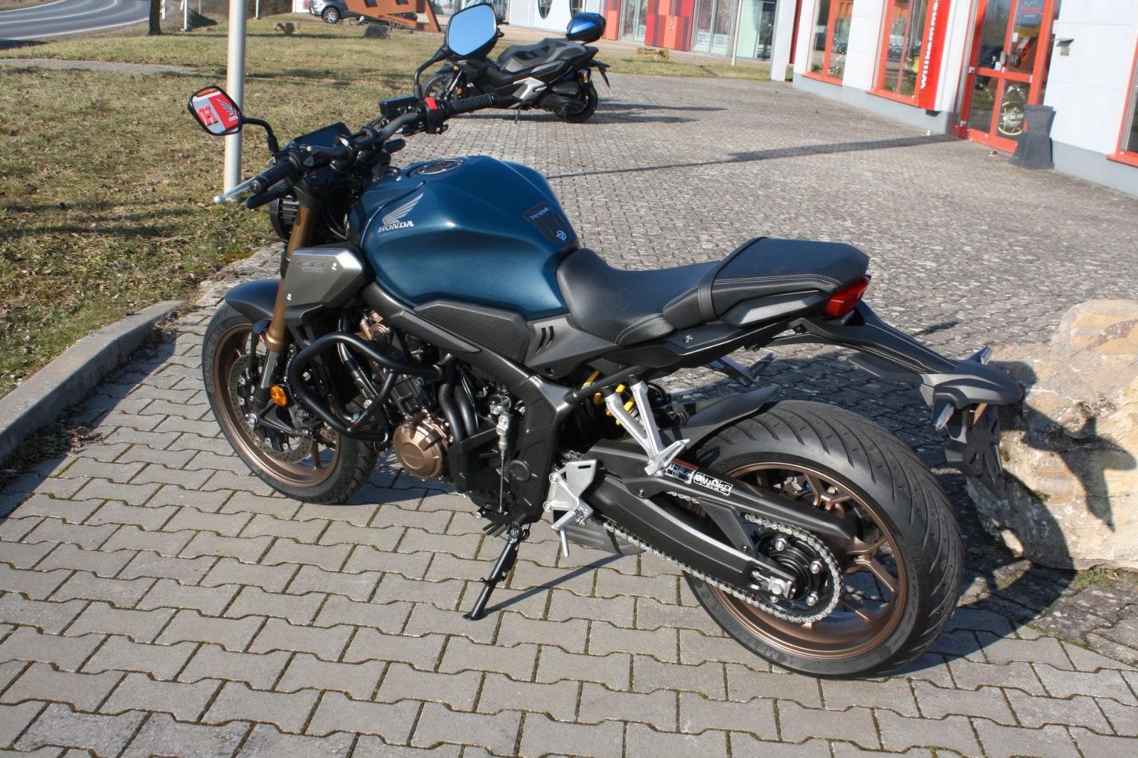 Elegantes Naked Bike in Matt Jeans Blue Metallic - die Honda CB650R aus erster Hand. Das Motorrad wurde von Beginn an in unserer Werkstatt scheckheftgepflegt und stammt direkt aus unserer Neuauslieferung an den Vorbesitzer, sodass wir es praktisch von Anfang an kennen.
