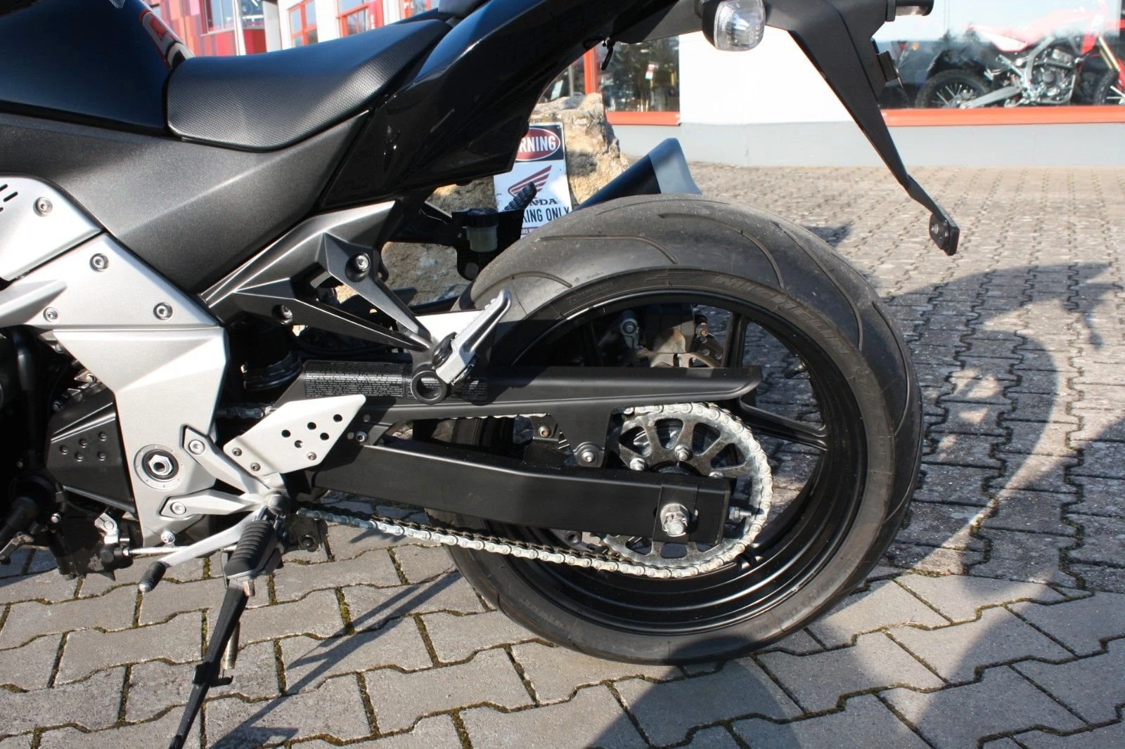 Zur Ausstattung gehören eine etwas höhere Windschutzscheibe sowie ein Paar Sturzpads. Aktuell ist eine Tieferlegung verbaut, die bei Bedarf wieder entfernt werden kann. Das Bike befindet sich mit kleineren, altersüblichen Gebrauchsspuren in gepflegtem Zustand - ein zuverlässiges Naked Bike für Einsteiger und erfahrene Fahrer und Fahrerinnen gleichermaßen.