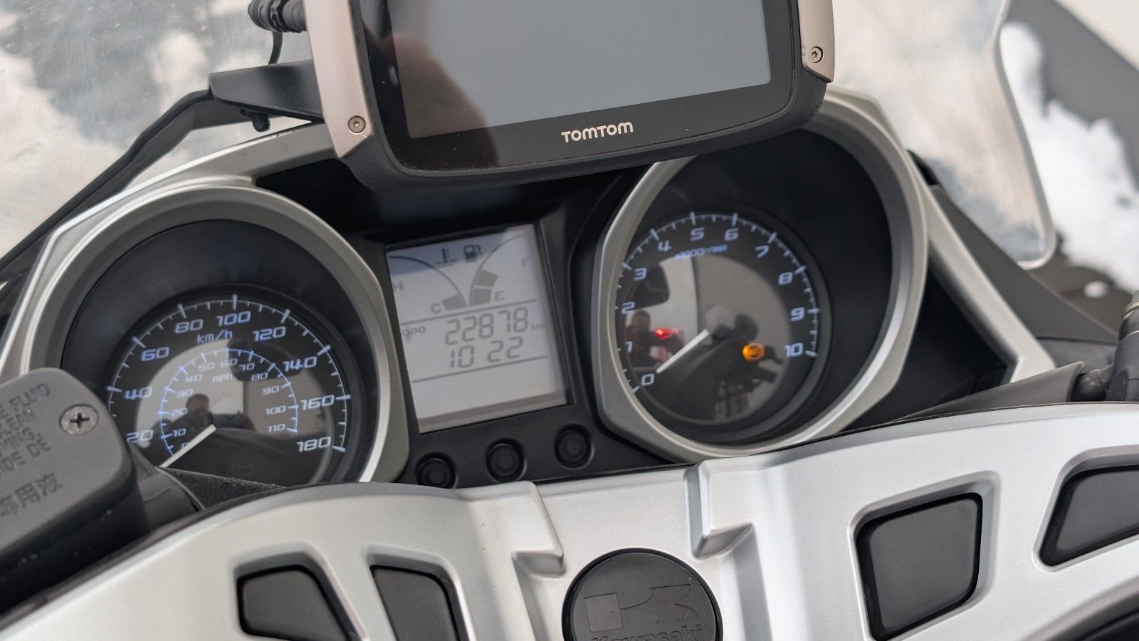 Bestandteil des Fahrzeugs sind das Top Case sowie ein TomTom Naivigationssystem.