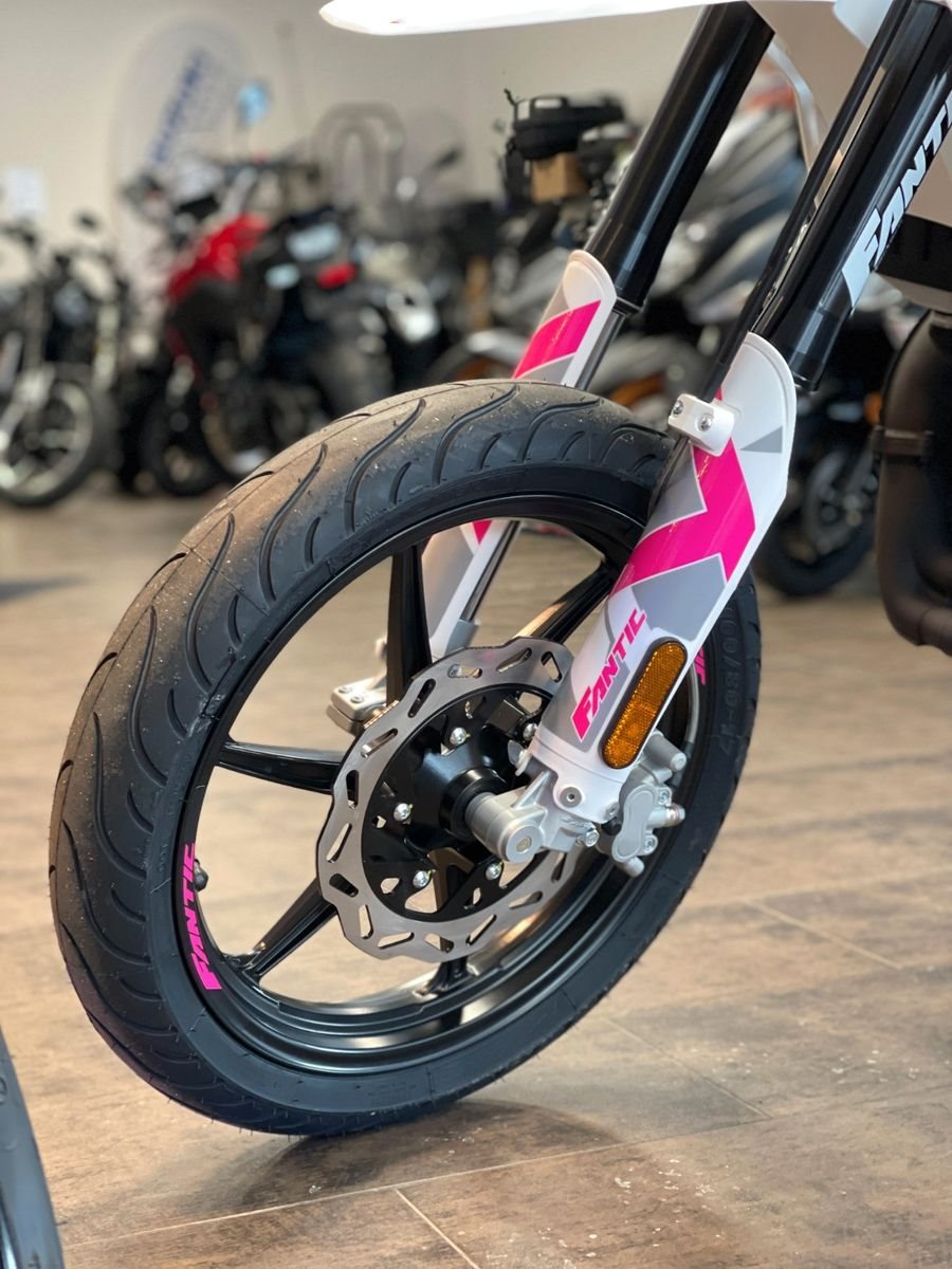 Wendig in der Stadt, präzise überall: Ein stabiler und leichter CrMo-Stahlrahmen, kombiniert mit Fantic-Fahrwerk: USD-Gabel Ø41 mm und progressiv angelenktes, verstellbares Federbein hinten.Wave-Bremsscheiben sorgen für kraftvolle Verzögerung, die 6-Speichen-Leichtmetallfelgen für Agilität. Für den Alltag gebaut, aber mit sportlicher Seele.
