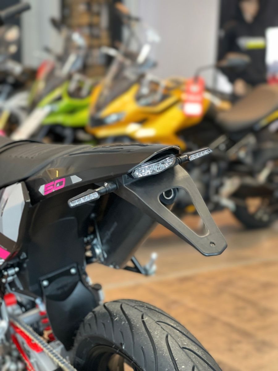Inspiriert vom Rennsport: Aggressive Linien, Racing-Komponenten und Liebe zum Detail: das Design stammt direkt von den großen Motard-Schwestern.