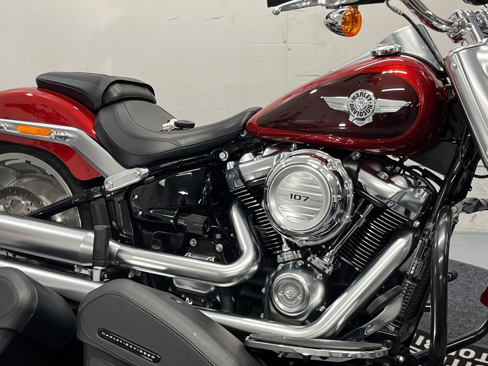 • Die Harley-Davidson FLFB Fat Boy ist in einem gepflegten Zustand