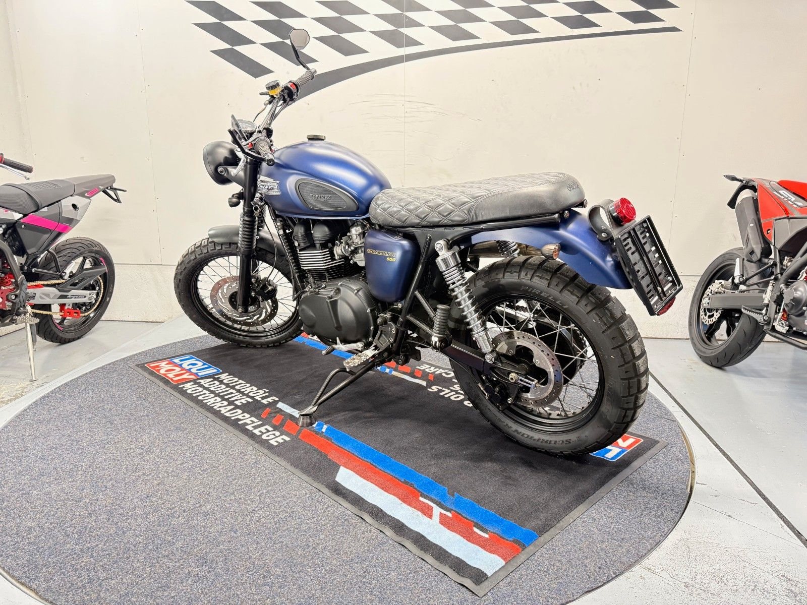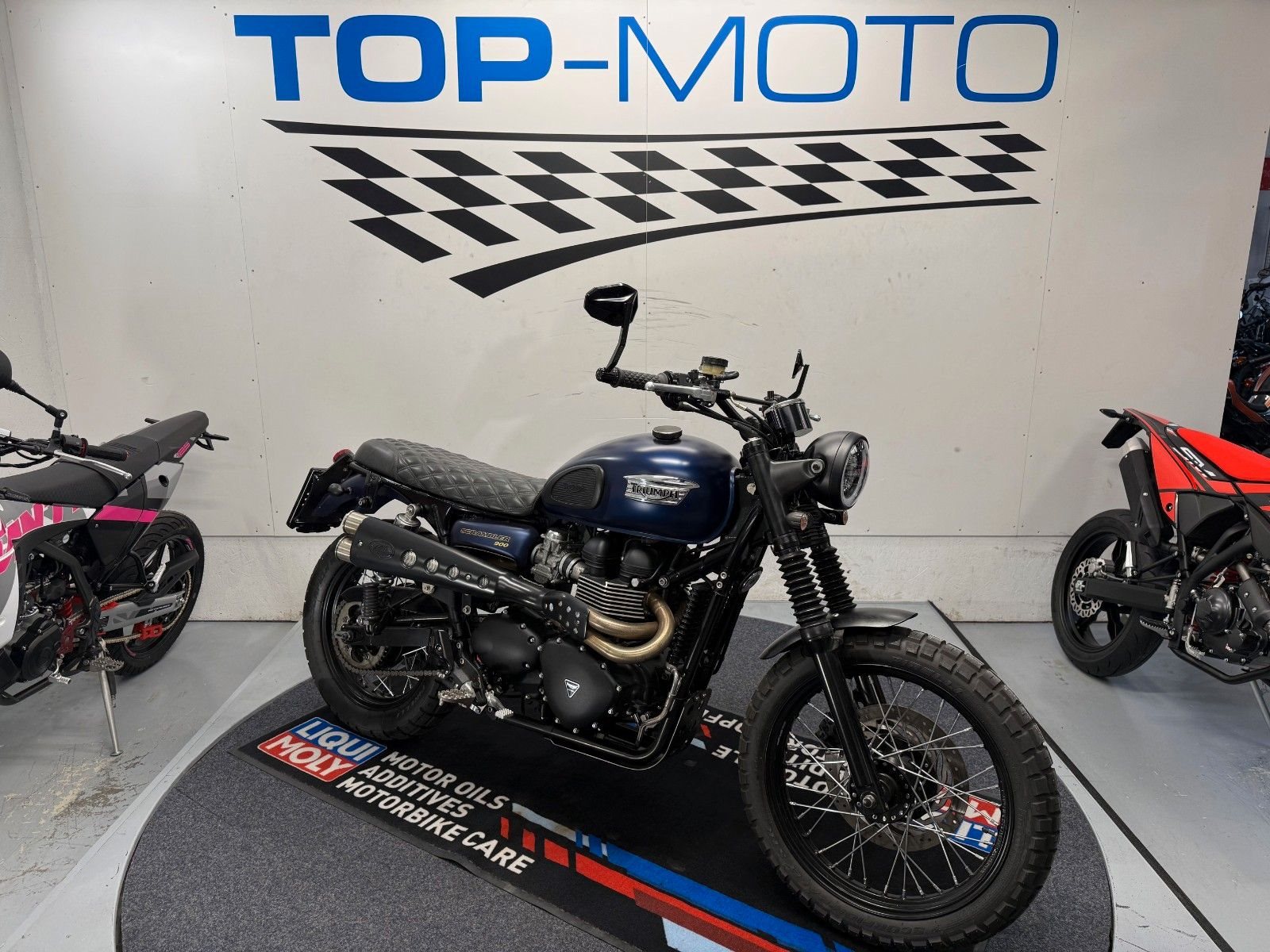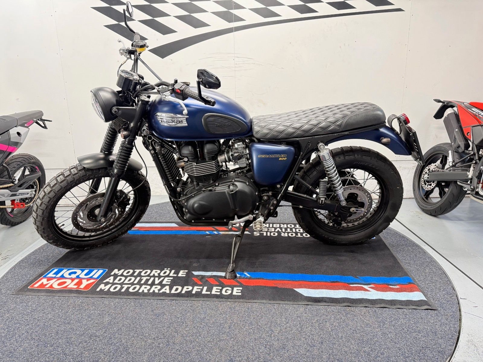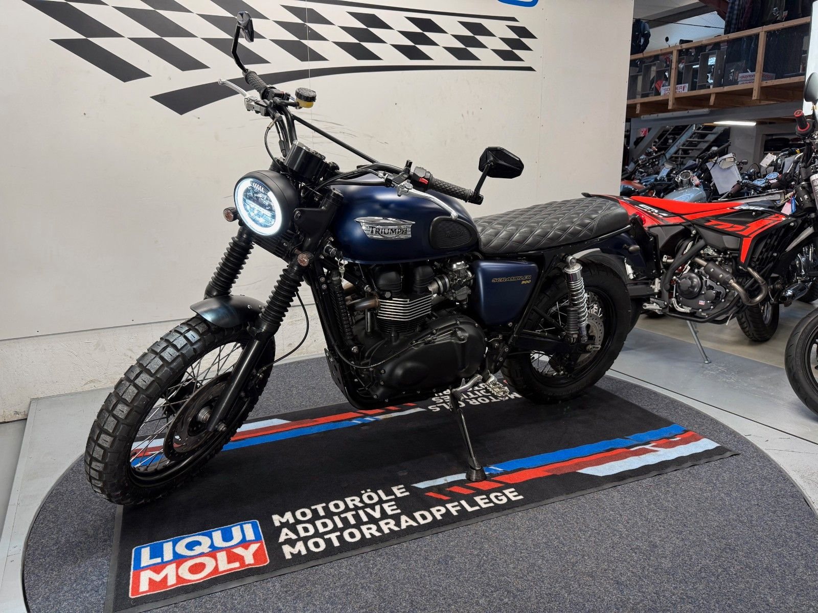 - Die Triumph Srrambler 900 ist in einem gepflegten Zustand.