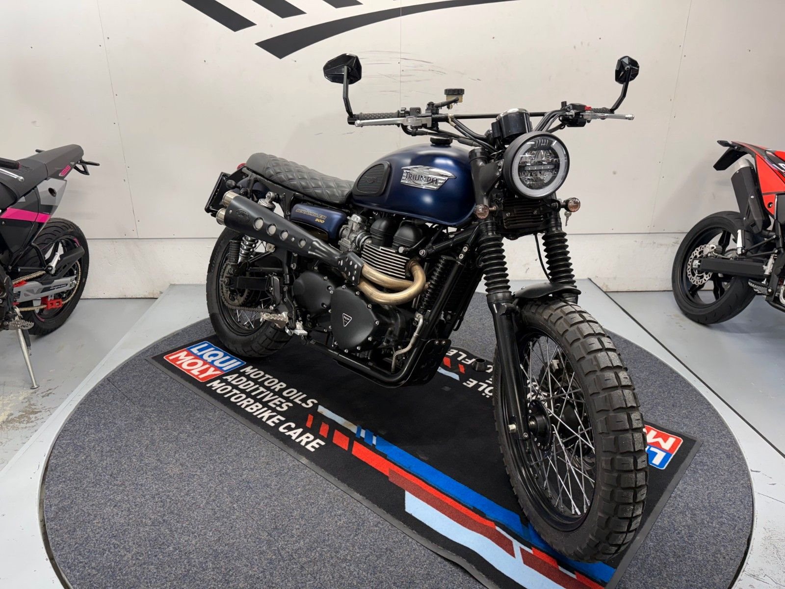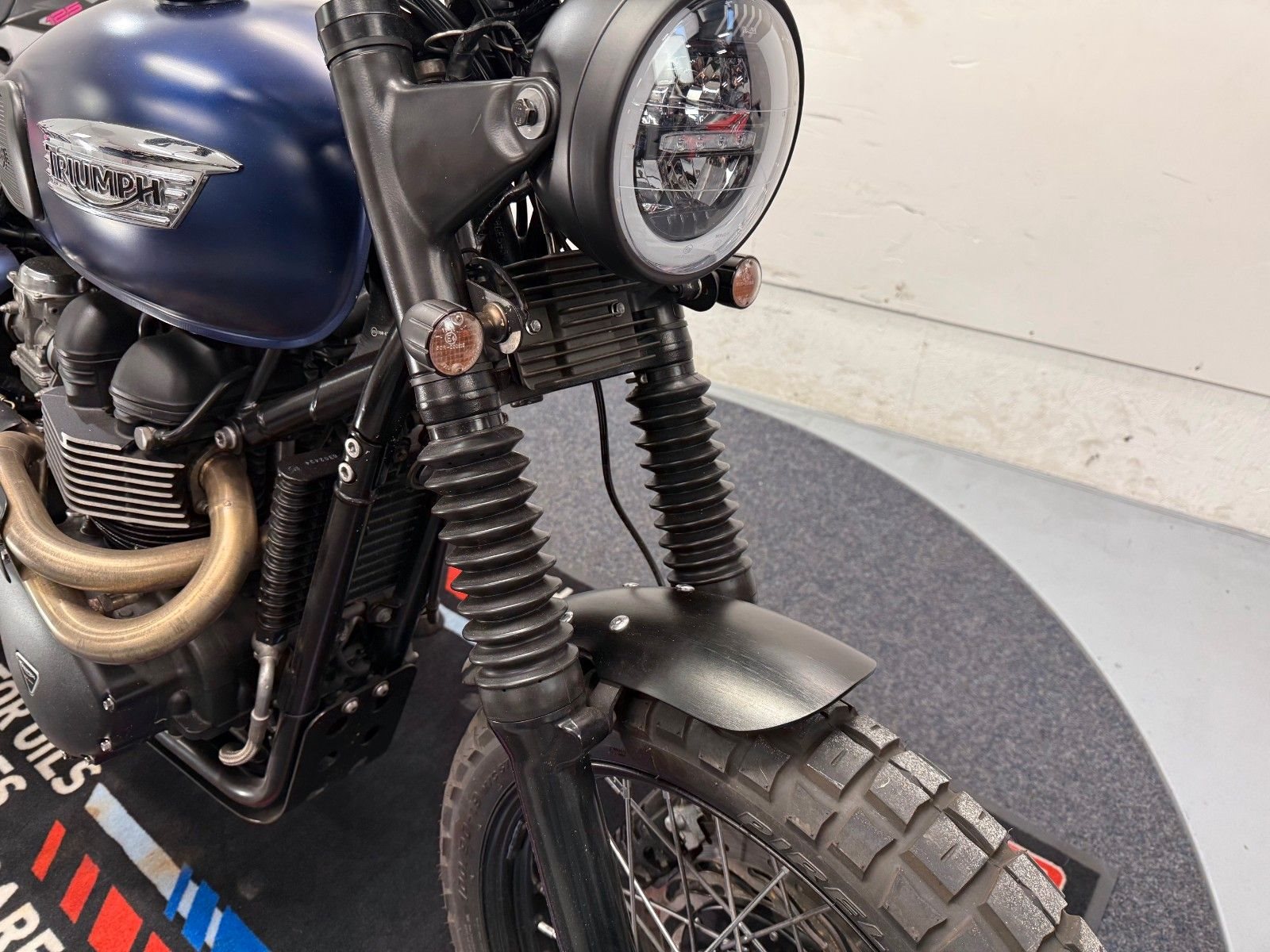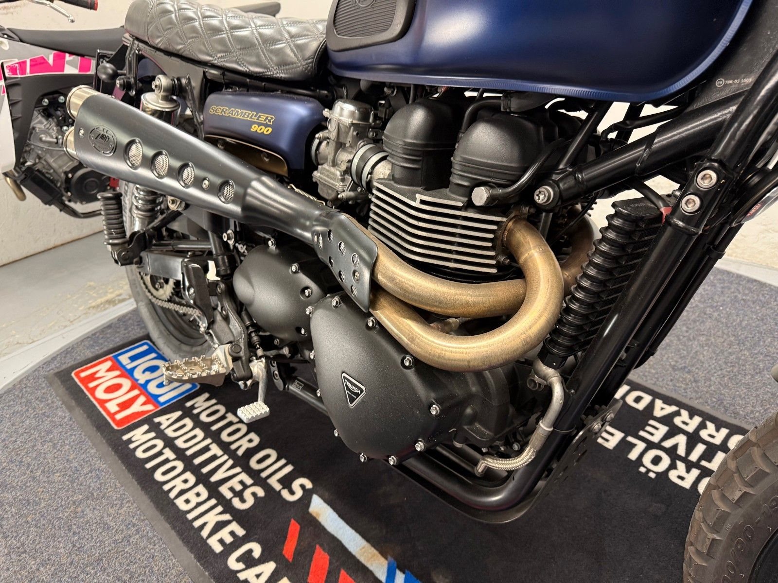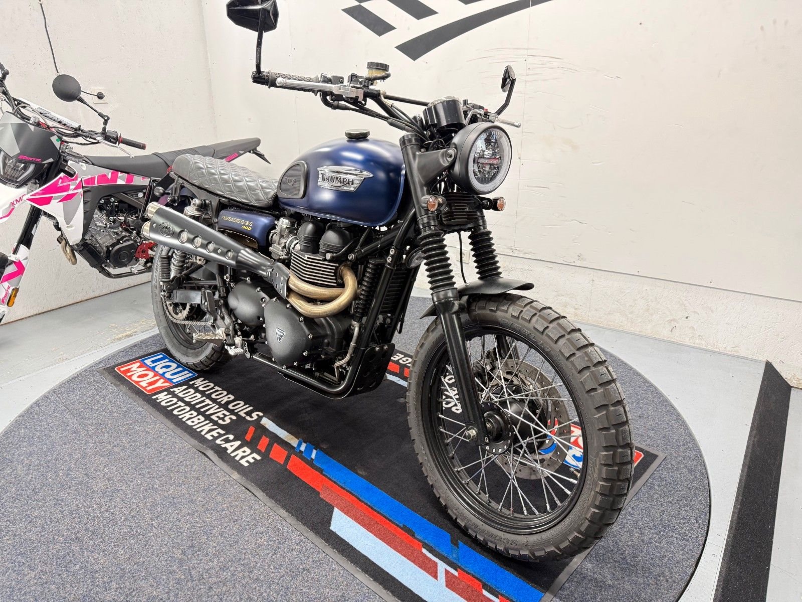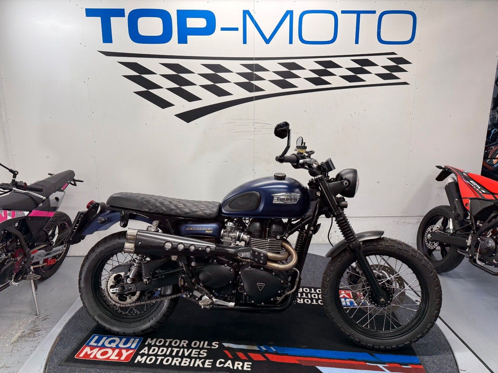 - Die Triumph Srrambler 900 ist in einem gepflegten Zustand.