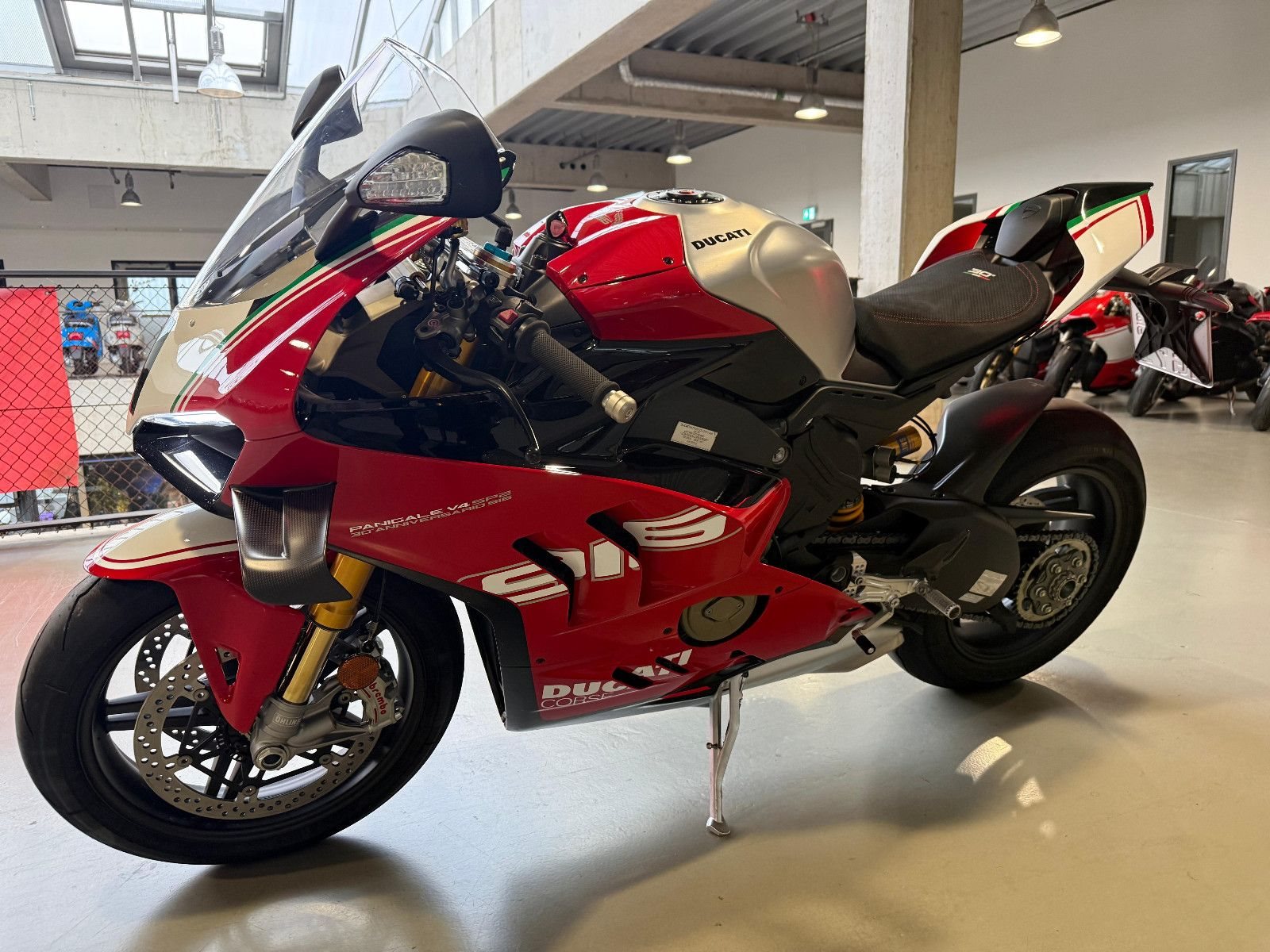 Ducati Power Launch (DPL), Ducati Quick Shift (DQS) up/down EVO 2, LED-Scheinwerfer mit Daytime Running Light (DRL), Ducati Electronic Suspension (DES) EVO mit Federelementen und Lenkungsdämpfer von Öhlins, Lithium-Ionen-Batterie, automatische Blinkerrückstellung, Racing-Griffgummis, Kettenschutz, Carbon-Felgen, Carbon-Kotflügel, verstellbare Fußrastenanlage aus gefrästem Aluminium mit Carbon-Fersenschutz, gefräste Brems- und Kupplungshebel, Carbon-Hitzeschutz