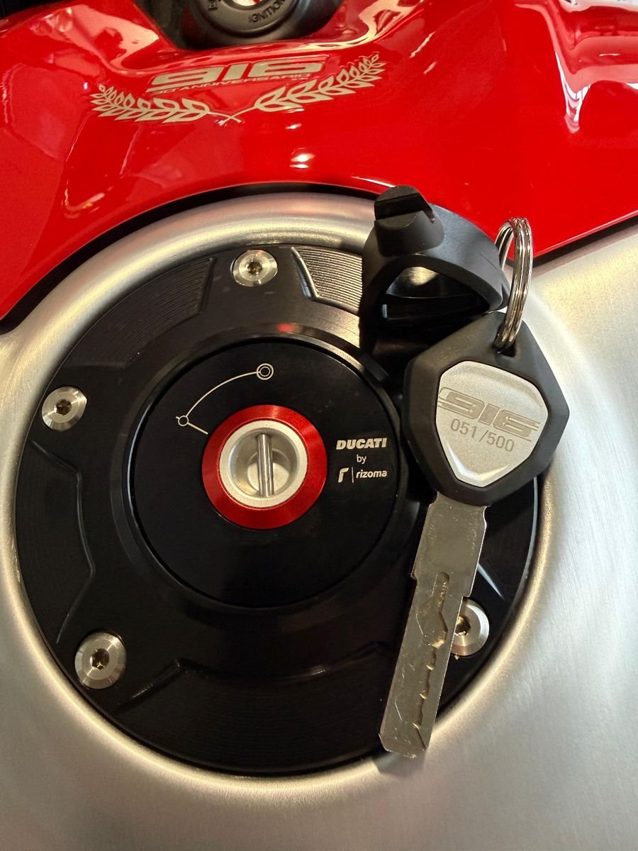 Ducati Power Launch (DPL), Ducati Quick Shift (DQS) up/down EVO 2, LED-Scheinwerfer mit Daytime Running Light (DRL), Ducati Electronic Suspension (DES) EVO mit Federelementen und Lenkungsdämpfer von Öhlins, Lithium-Ionen-Batterie, automatische Blinkerrückstellung, Racing-Griffgummis, Kettenschutz, Carbon-Felgen, Carbon-Kotflügel, verstellbare Fußrastenanlage aus gefrästem Aluminium mit Carbon-Fersenschutz, gefräste Brems- und Kupplungshebel, Carbon-Hitzeschutz