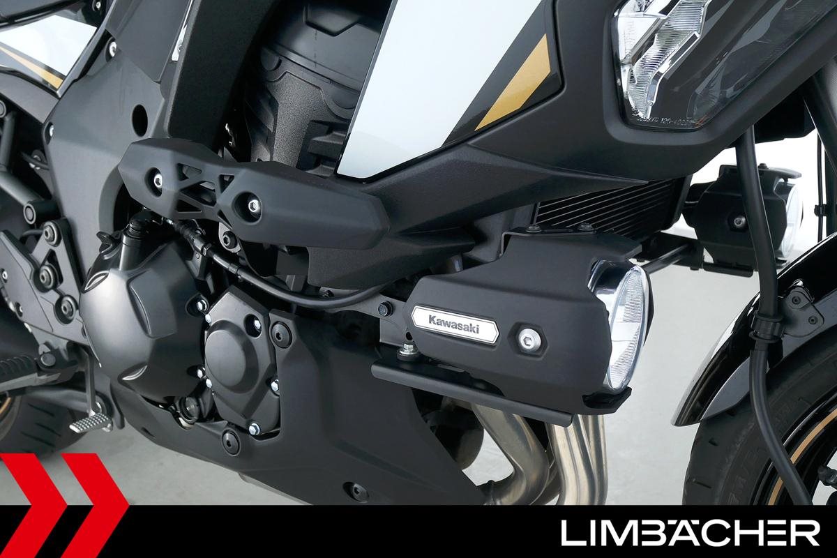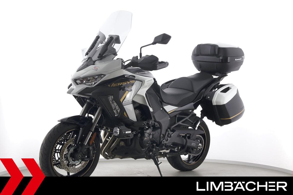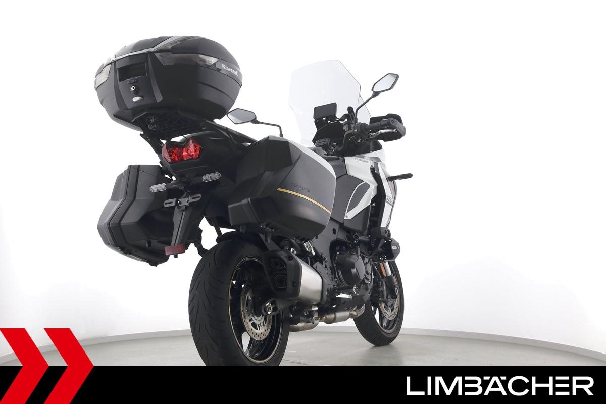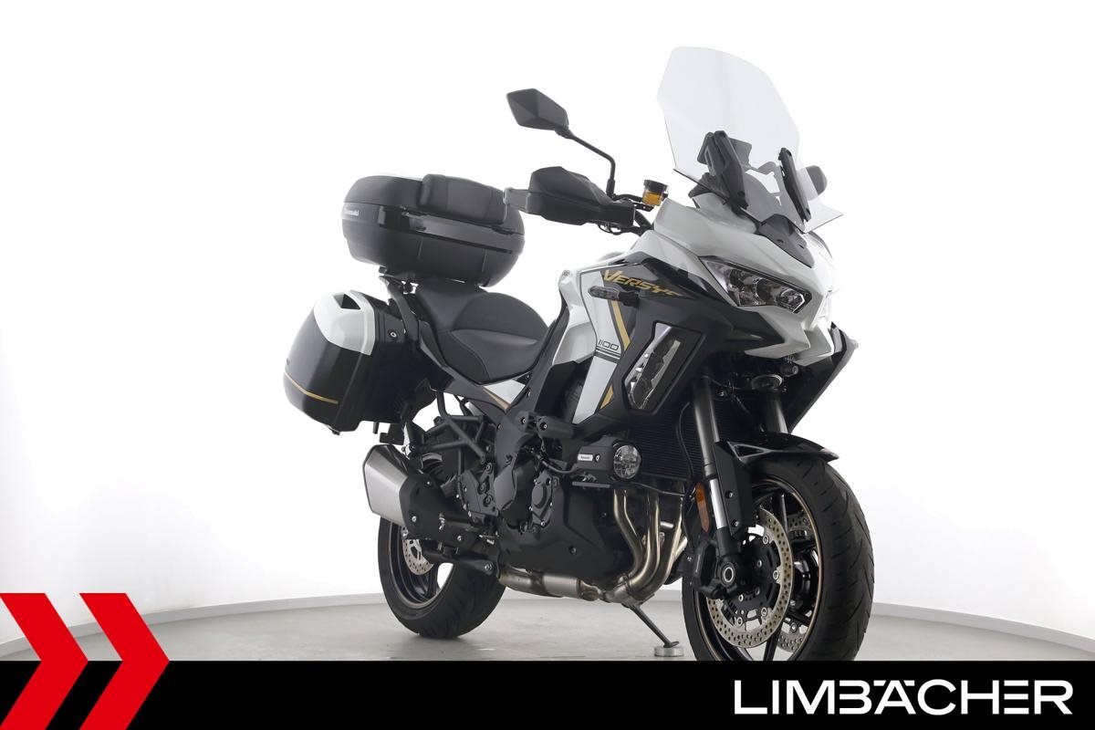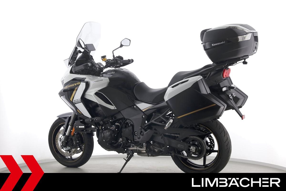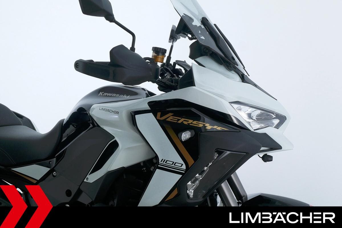 Eine scheckheftgepflegte Kawasaki Versys 1100 SE Grand Tourer aus erster Hand in Topzustand u.a. mit Kawasaki-Koffersystem incl Topcase gleichschließend sowie High-Definition Anti-Shake-Kameras auf der Vorder- und Rückseite.