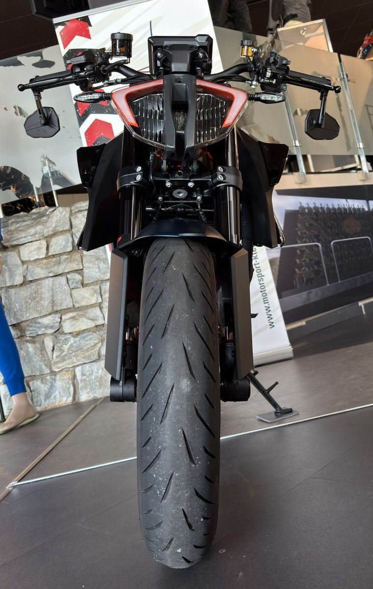 Die KTM 1290 Super Duke R 2023 ist ein Naked Bike mit einem 1301 cm V-Twin-Motor, der 180 PS und 140 Nm Drehmoment liefert. Sie beschleunigt in 2,6 Sekunden von 0 auf 100 km/h und erreicht eine Höchstgeschwindigkeit von 300 km/h. Das Motorrad verfügt über ein TFT-Display, Fahrhilfen wie Traktionskontrolle und Kurven-ABS sowie eine Launch Control.