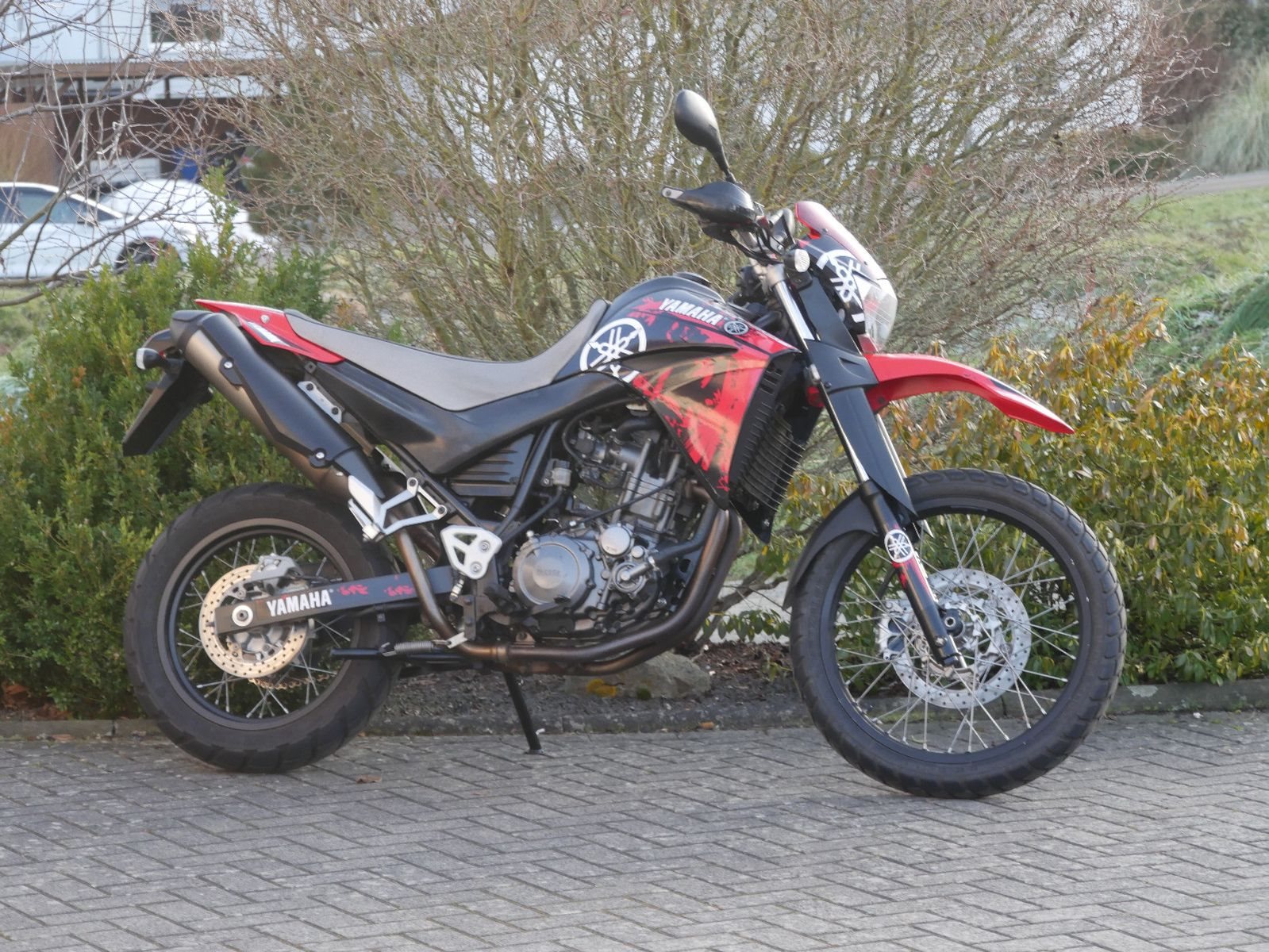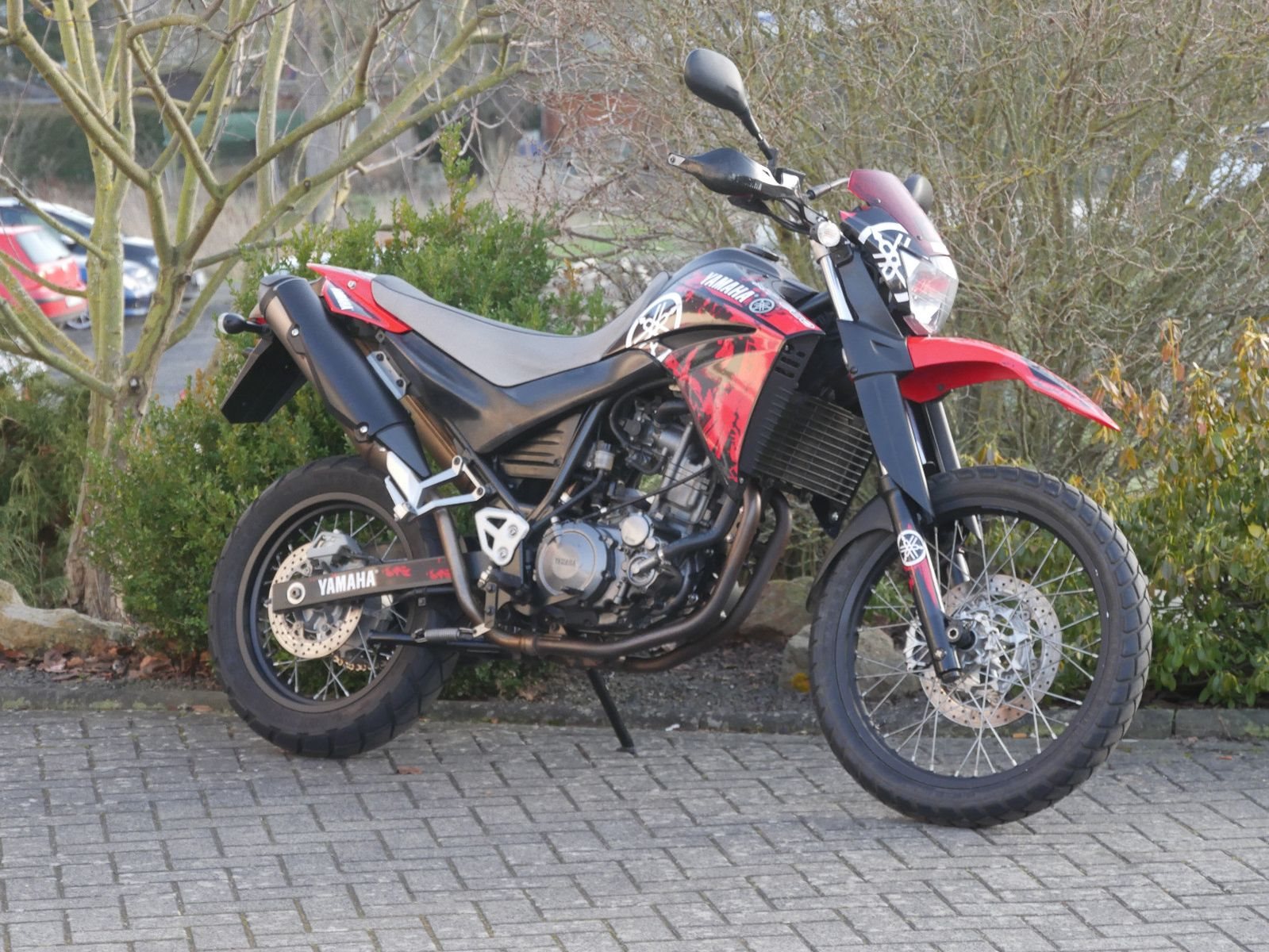 Yamaha XT660R mit Hauptständer im guten Allgemeinzustand. Vor der Auslieferung bekommt die XT noch eine frische Inspektion.