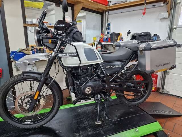 Wir bieten dir hier eine tolle Enduro Royal Enfield Himalayan 411 aus erster HandDas Fahrzeug hat sehr viel Zubehör und ist keine 10000 Km alt Machen Sie jetzt einen Termin zur Probefahrt!Gerne Finanzieren wir auch ihren Traum von einem Neuen Fahrzeug. Wir sind Vertragspartner folgender Marken im Raum Weilburg-Limburg Suzuki, Kawasaki, Royal Enfield, Peugeot Besuchen Sie uns in Weilburg, Friedenbachstrasse 10 Wir bieten: - Meisterwerkstatt und Geschultes Personal- 24/48 Stunden E-Teile Service- Mobilitätsservice- Hol und Bring-Service- Mietstation- Bekleidung und Zubehör- Ständig eine große Anzahl an gepflegten und preiswerten Fahrzeugen- Finanzierung mit und ohne Anzahlung bei flexiblen Laufzeiten- Inzahlungnahme und Ankauf von gepflegten Fahrzeugen- Bundesweiter Zulassungsservice und Lieferung Email: weilburg (at) braunis-bike-shop.de oder telefonisch unter 06471-7888. Unser Team freut sich auf Ihren Besuch und berät Sie gerne. Unsere Öffnungszeiten: Montags GeschlossenDienstag-Freitag: 10.00 Uhr - 12.00 Uhr und 13.00 Uhr - 18.00 UhrSamstag von 9.00 Uhr - 13.00 Uhr Gerne liefern wir unsere Fahrzeuge auch innerhalb Deutschlands ,gegen einen entsprechenden Aufpreis von 399.-€.Irrtum, Änderungen und Zwischenverkauf vorbehalten. Es gelten unsere AGB.