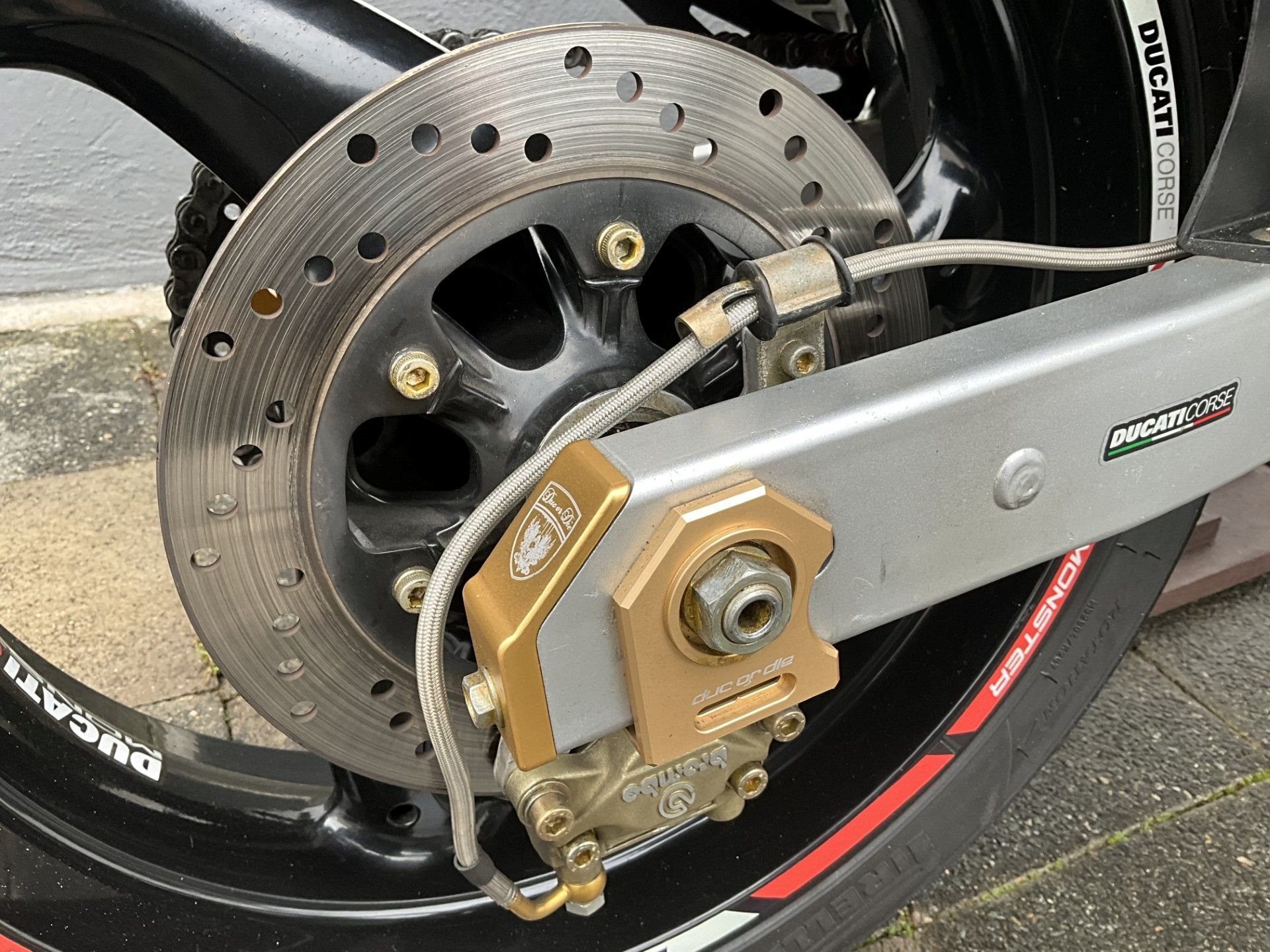 Technik/Zubehör: Spark-Carbon-HighUP Auspuff, Lithium-Ionen-Batterie, Rizoma Druckplatte, Kupplungsdruckzylinder (gold)