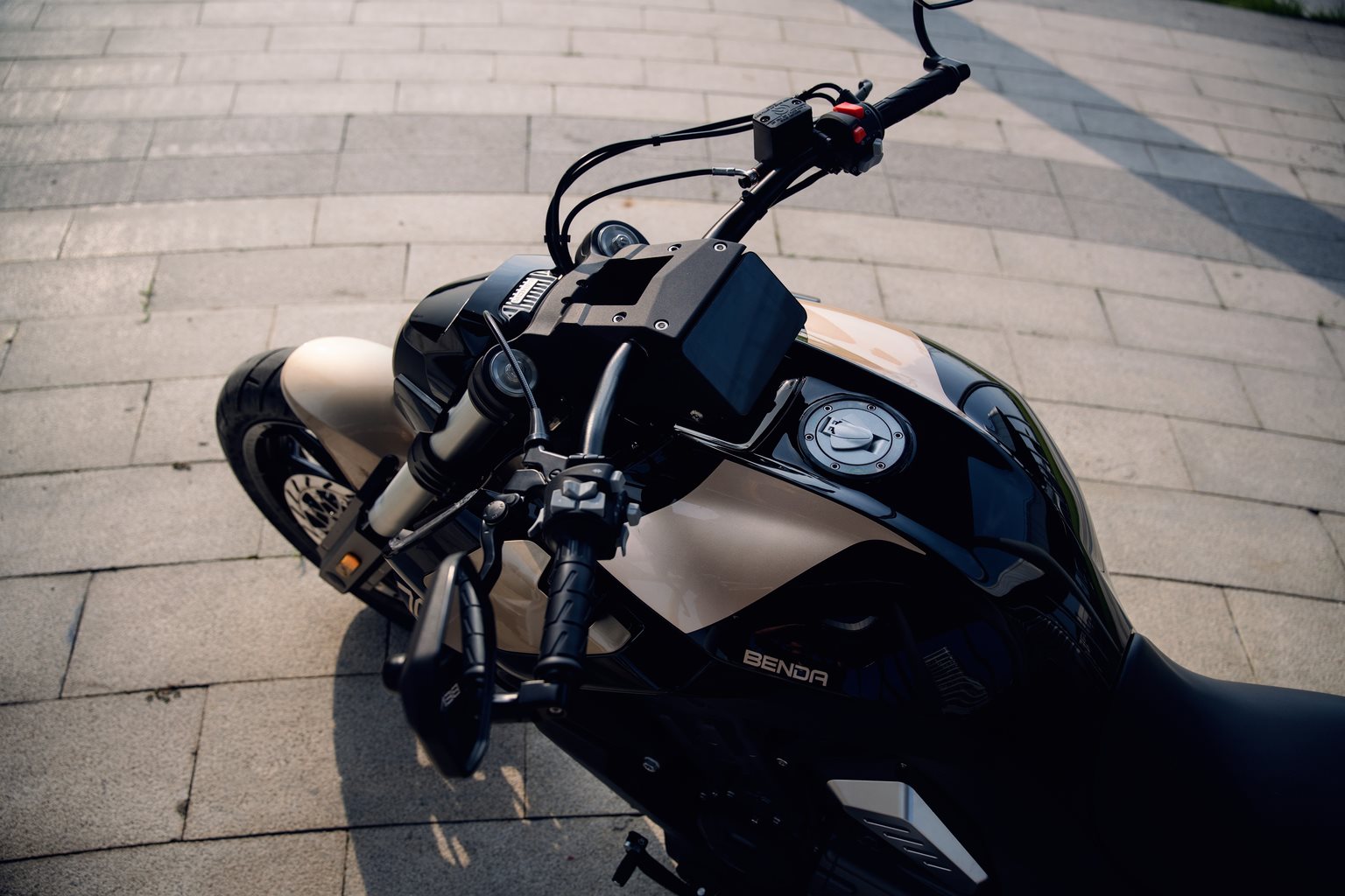 Neufahrzeug mit 3 Jahren Garantie Motortyp Reihen-Vierzylinder,16 Ventile, Flüssigkeitsgekühlt Gassteuerung / Ventile DOHC/4 Hubraum 676.9cc Leistung 63kW (86PS) bei 10.300/min. Drehmoment 60Nm bei 8.600/min. Verdichtungsverhältnis 11.4:1 Bohrung/ Hub 6748mm Anzahl der Gänge 6 Kupplung Mehrscheiben/ Ölbad - Anti-Hopping Kupplung Antrieb Kette | D.I.D Norm / Emissionen Euro 5+ | CO2: 129 g/km | 99 dB(A) Verbrauch 5.6L/100km Max. Geschwindigkeit 160km/h COC Abmessungen LBH 24409101110mm Radstand 1720mm Sitzhöhe 695mm Gewicht Fahrfertig 295kg Zulässiges Gesamtgewicht / Zuladung 467kg / 180kg Bodenfreiheit 160mm Tankvolumen 17L / (E5) Reifen Vorne 130/70 R19 (CST) Reifen Hinten 300/35 R18 (CST) Maximale Personenzahl Fahrer + Sozius ahrwerk Vorne KYB USD Gabel Fahrwerk Hinten Elektronische Luftfederung (Dual-Chamber) Federweg Vorne / Hinten 100 mm / 36.5 mm Bremsen Vorne Brembo / Radial, 432mm Kolben / 320mm Doppel-Scheibe Bremsen Hinten Brembo / Radial, 234mm Kolben / 260mm Einzel-Scheibe Rahmen & Schwinge Aluminium-Gussrahmen / Aluminiumschwinge Lenkkopfwinkel (° gegen Horizontale) 32° Nachlauf 208 mm Instrument 5 TFT Display / Hinterleuchtete Lenkerschalter Sicherheit Bosch ABS / TCS / Anti-Hopping Kupplung Komfort / Anschlüsse USB-A Scheinwerfer Zusatzscheinwerfer sind verbaut jedoch nicht funktionsfähig. Air Suspension Air Suspension hat 2 Variablen: Fahrhöhe - Standart & Hoch Dämpfung: Comfort & Sport Rahmen Neu entwickelter vorderer Aluguss-Rahmen mit Querstrebe für erhöhte Steifigkeit. Kühler 60% größerer Kühler Auspuff Neu gestaltet, verbesserte Ausrichtung