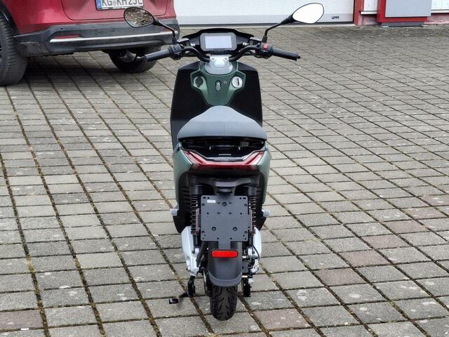 Außenfarbe GRÜN, WMTC - Reichweite: 66 km, bis zu 85 km im Eco - Modus, Batterie: 48V / 48Ah, Leergewicht 74 kg / 79 kg incl. Batterie, Höchstgeschwindigkeit 60 km/h, 2 kW Motorleistung / 3 kW max, Hybrid Benzin, Batterie gekauft