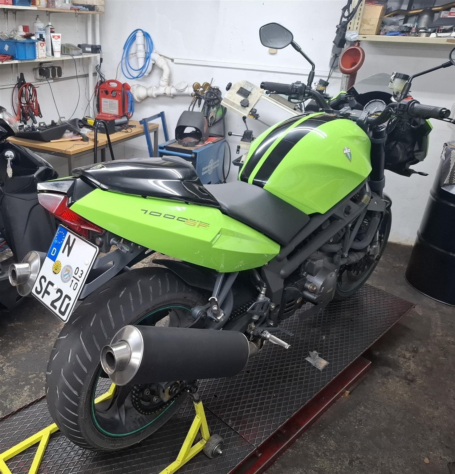 Motorrad ist im Top-Zustand, grün mit schwarzen Streifen, HU 06/27, Kettensatz DID525ZVMX2 neu, CLS Heizgriffe und Kettenöler, Tankring für SW-Motech, V-Trec Griffe, Nissin Radialbremspumpe vorne, Nissin Kupplungspumpe, Alle Kundendienste durchgeführt, kein Reparaturstau,