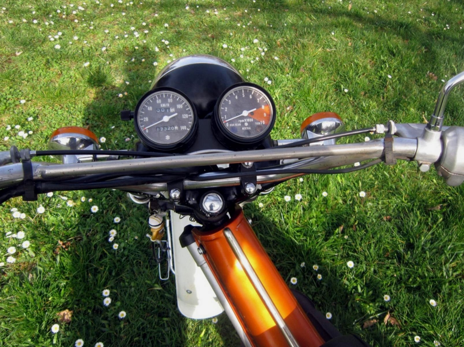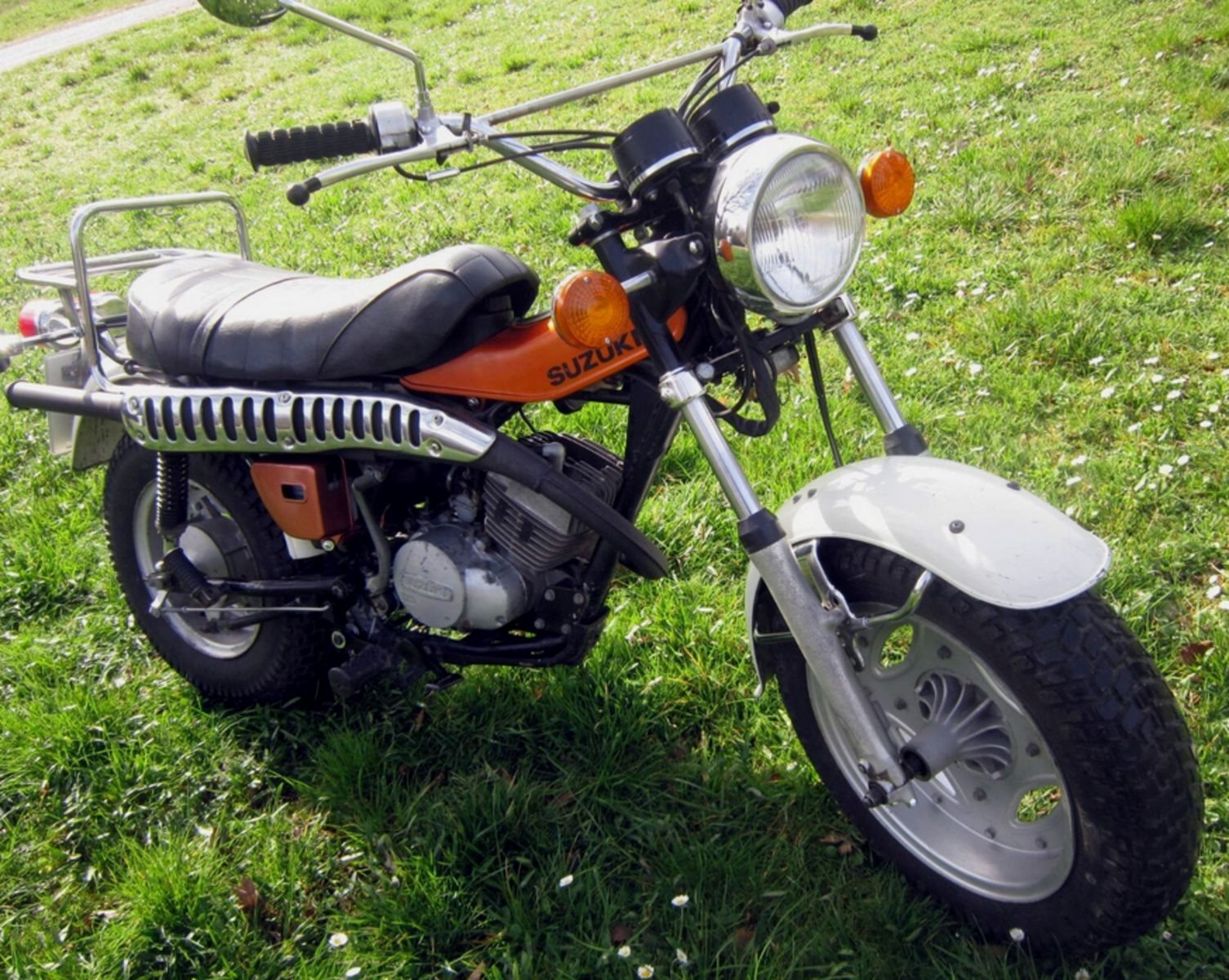Hier meine Suzuki RV 125. Sie wurde 1977 in Japan gebaut. Der Allgemeinzustand Lackierung usw. ist original.