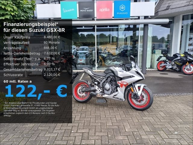 Seit über 35 Jahren steht Suzuki R für Innovation und Spitzenleistung. Die neue GSX-8R besticht durch ihr messerscharfes Design und einen der besten Parallel-Twins seiner Art. Das Fahrwerk setzt neue Maßstäbe und lädt sowohl zu sportlichen Sprints auf der Rennstrecke als auch zu komfortablen Fahrten im Alltag ein.