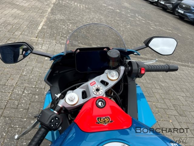 , sorgt für blitzschnelle Starts und Schaltvorgänge. Die sechsachsige Trägheitsplattform und Ride-by-Wire optimieren die Kontrolle, wobei erstere den Zustand des Motorrads im Verhältnis zur Straße in Echtzeit überwacht. Auch bei Bremsmanövern ist die RS 660 führend: Dank des mehrstufigen Kurven-ABS bleibt die Bremskraft auch in Schräglage präzise dosierbar. Während Sie den Adrenalinkick des Fahrens genießen, sorgen die hintergrundbeleuchteten Bedienelemente und das 5-Zoll-Farbdisplay mit optischem Bonding für maximale Sichtbarkeit und leichte Bedienung, sodass Sie sich voll auf die Straße konzentrieren können.