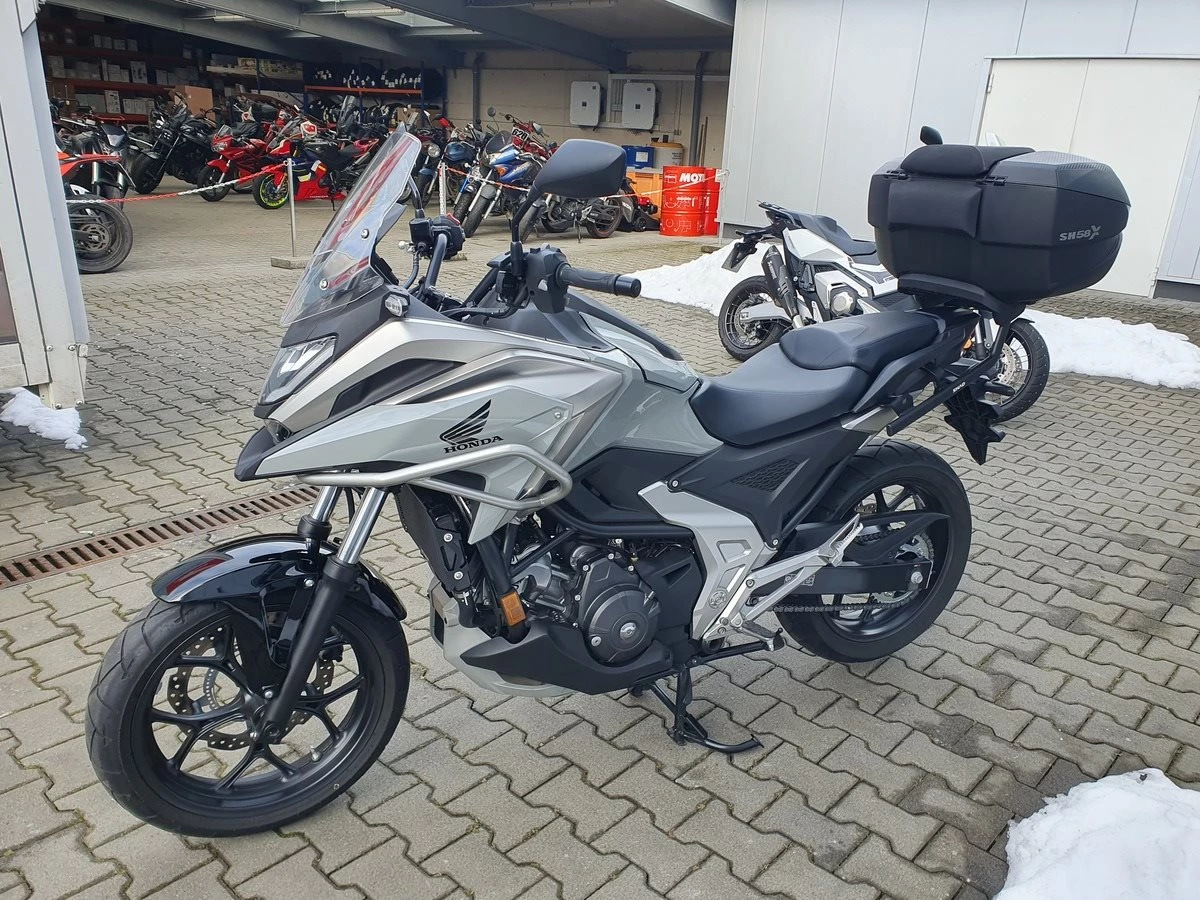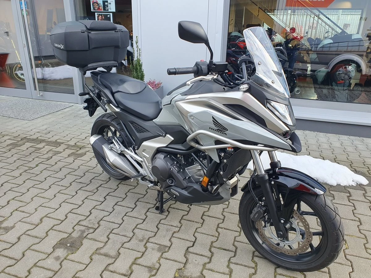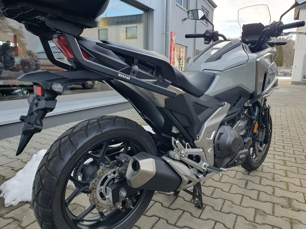 Honda NC 750 X DCT aus 1. Hand in Pearl Deep Mud Gray mit nur 2.600 KM. Die NC jhat den original Honda Sturzbügel, USB Dose im Staufach und Hauptständer. Zusätzlich wurde noch ein großes Shad Top-Case montiert. Dieses ist in der Größe einstellbar. Service frisch und TÜV wird NEU gemacht.