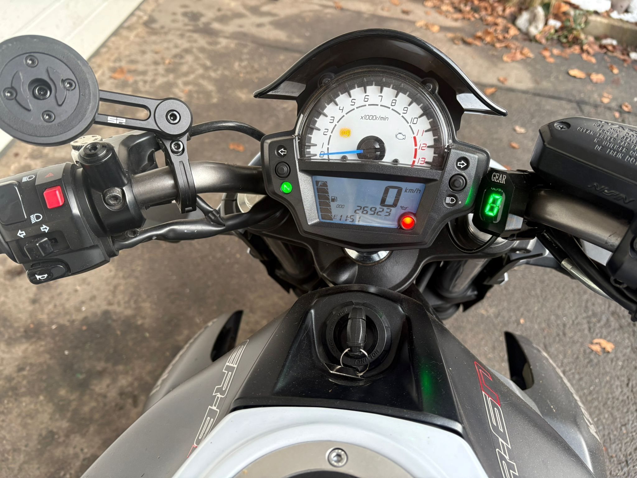 Das Motorrad ist einmal umgefallen (auf die Sturzbügel), hatte aber nie einen Unfall. Alle Schäden wurden fachgerecht behoben.