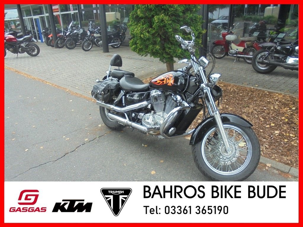 Gut erhaltene Honda VT 1100 aus 1. Hand mit aktuelem TÜV, Sportauspuff, Fehling Lenker(ABE), Seiten-Ledertaschen, Sissybar und Motorschutzbügel.