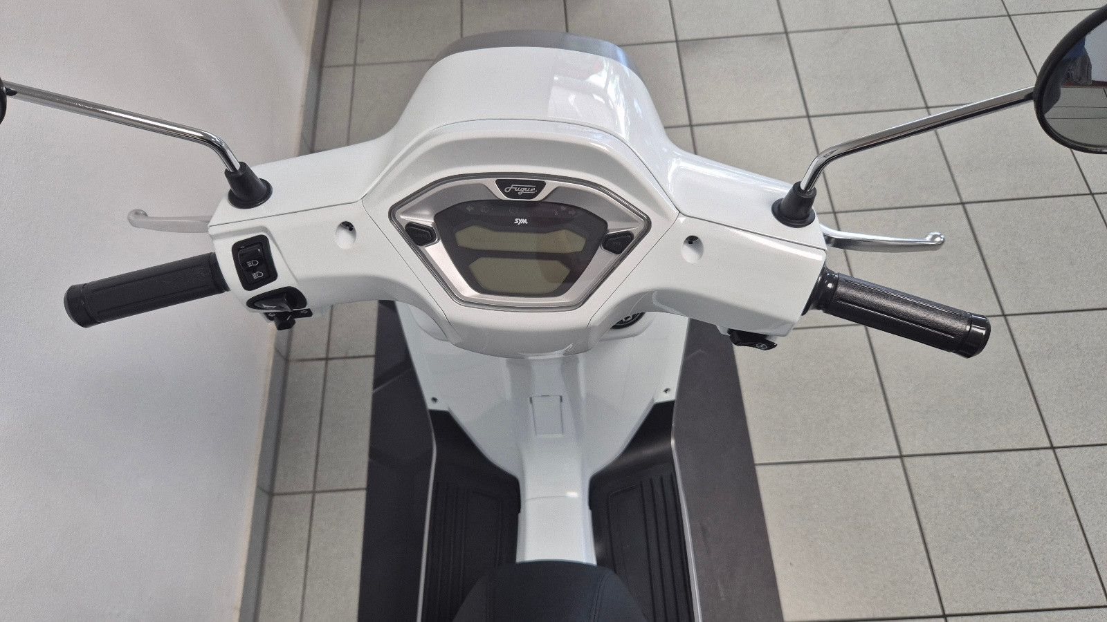SYM FUGUE 125 - Der moderne Klassiker unter den Rollern Der FUGUE 125 verbindet zeitlose Eleganz mit modernster Technik und ist der perfekte Roller für alle, die sowohl Stil als auch Funktionalität suchen. Inspiriert von der musikalischen Form der "Fuge", steht der FUGUE 125 für Harmonie, Präzision und ein einzigartiges Design. Mit seiner stilvollen Karosserie zieht er bei jeder Fahrt die Blicke auf sich. Dieser Roller bietet alles, was man sich von einem modernen Klassiker wünscht: eine vollständige LED-Beleuchtung für optimale Sicht und Sicherheit, ein LCD-Instrumentenpanel, das alle wichtigen Fahrdaten auf einen Blick anzeigt, und eine USB QC 3.0-Ladebuchse. Mit dem großzügigen 27-Liter Stauraum unter dem Sitz bietet der FUGUE 125 zudem ausreichend Platz für Ihre persönlichen Gegenstände - perfekt für den täglichen Einsatz in der Stadt. Dank des ABS-Scheibenbremssystems können Sie sich auf exzellente Bremskraft und höchste Sicherheit verlassen. Der FUGUE 125 ist der ideale Begleiter für Ihre urbanen Fahrten und garantiert ein Fahrgefühl der Extraklasse. Ob im hektischen Stadtverkehr oder bei entspannten Fahrten durch die Straßen - der FUGUE 125 macht jede Fahrt zu einem Highlight. Erleben Sie die perfekte Kombination aus Design, Komfort und Performance und lassen Sie sich von diesem Roller begeistern. FUGUE 125 - Ihr neuer urbaner Klassiker.
