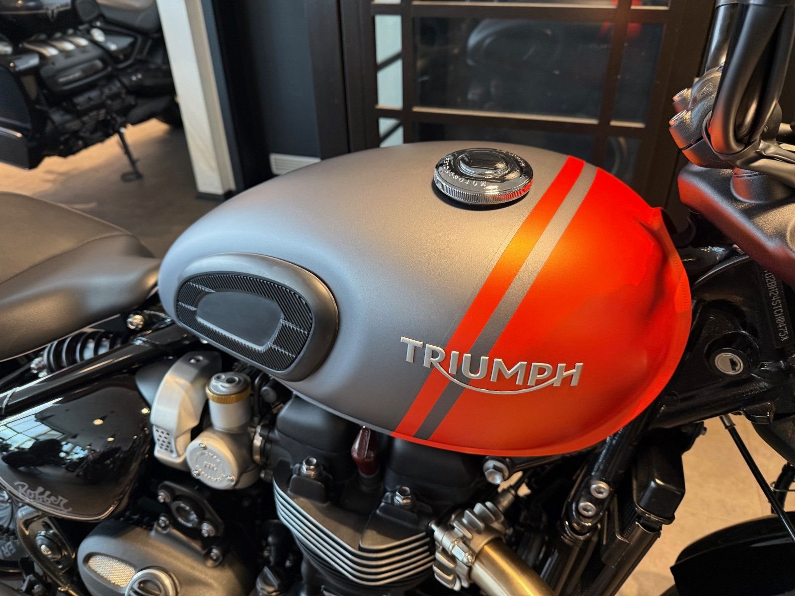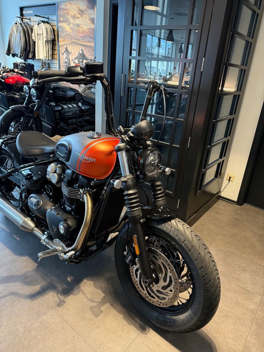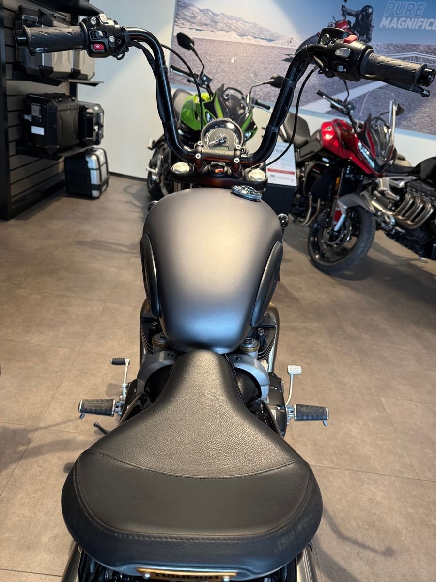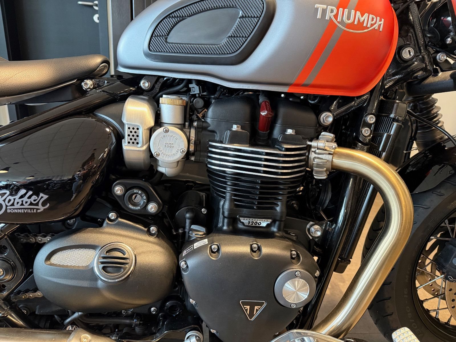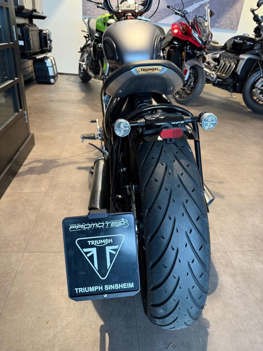 Diese Triumph Bonneville Bobber begeistert mit kompromisslosem Custom-Look. Der markante APE-Lenker sorgt für eine dominante Sitzposition, während LED-Blinker vorne und hinten moderne Akzente setzen. Der kurze Fender vorne und hinten verleiht der Maschine eine klare, reduzierte Linie und unterstreicht den puristischen Bobber-Charakter. Ein Motorrad für alle, die Haltung zeigen - auf der Straße und im Stand.