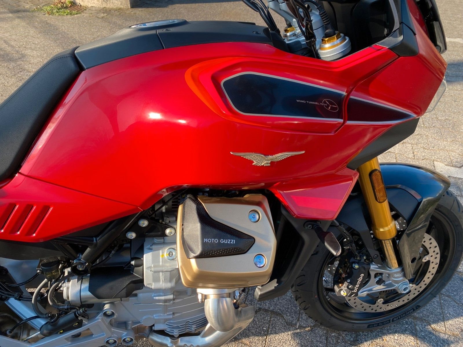 Basis ist die V100 S, Semiaktives Öhlins Fahrwerk (Smart EC 2.0) Originalzubehör: Quickshifter "Blipper" Funktion, Heizgriffe, Reifendrucküberwachungssystem, Multimedia Plattform