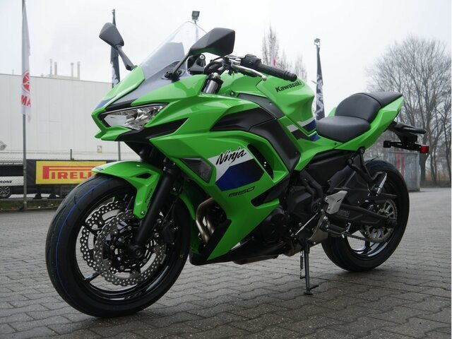 Fahrspaß, sportliches Design und einfach zu fahren endash genau das verkörpert die Ninja 650. Der Reihenzweizylindermotor mit 650ccm bietet eine kräftige Drehzahlmitte und zusammen mit dem schlanken Chassis ein leichtes Handling. Mit Traktionskontrolle, kompletter