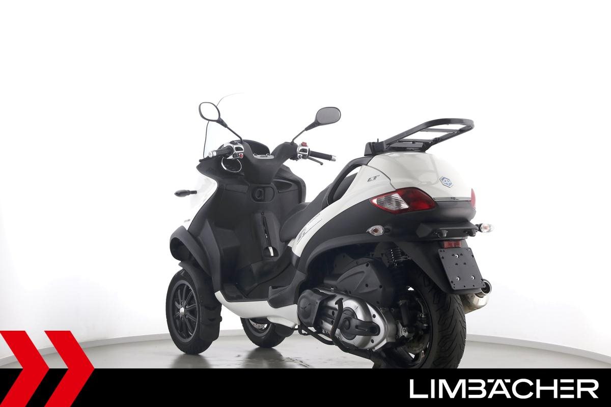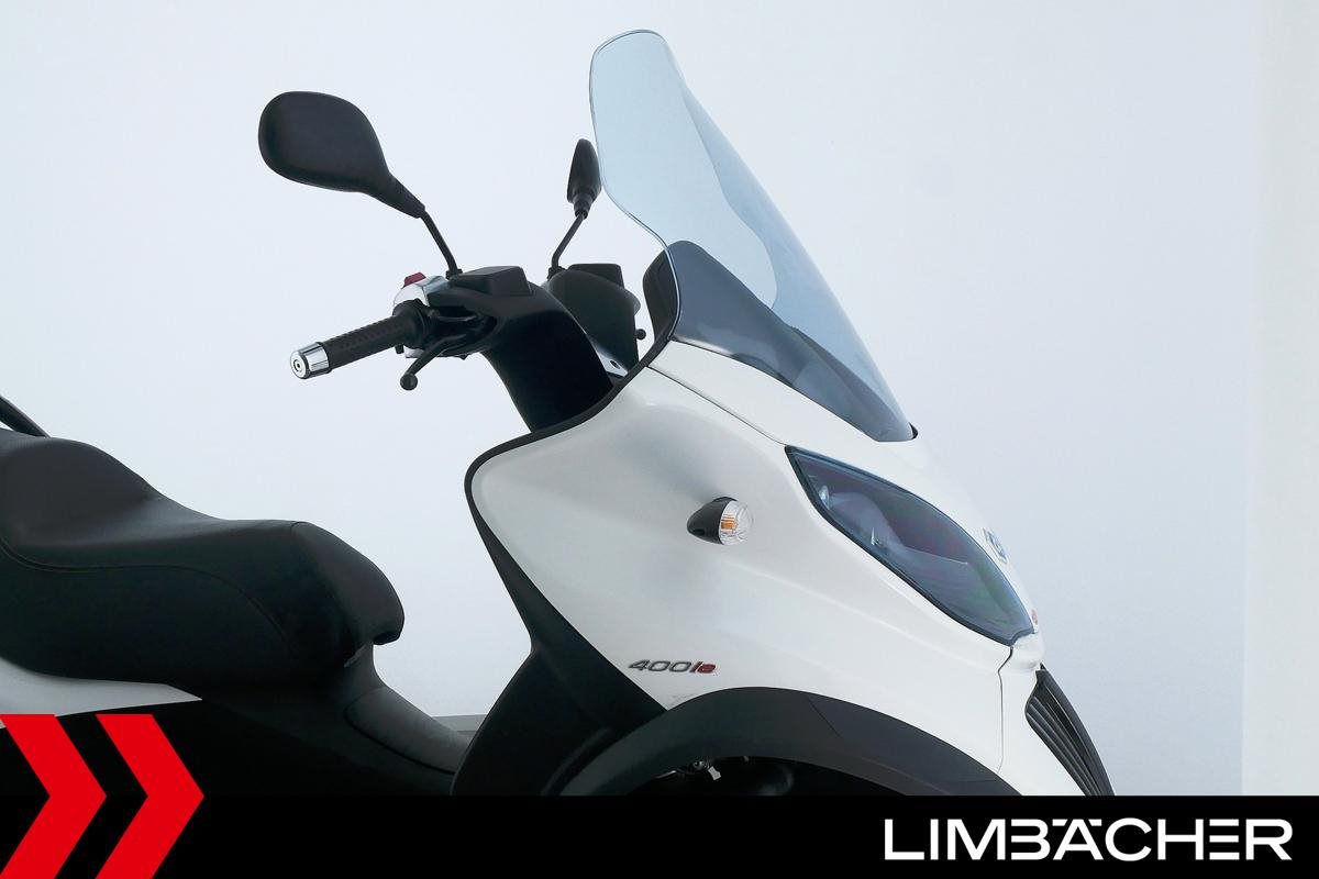 Ein Piaggio MP3 400 LT in gebrauchtem Zustand u.a. mit Originalausstattung und Fußbremse.