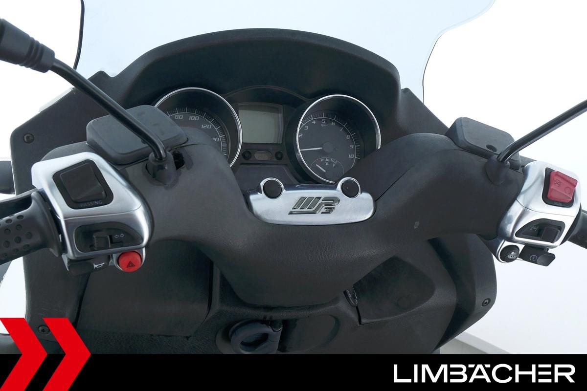 Ein Piaggio MP3 400 LT in gebrauchtem Zustand u.a. mit Originalausstattung und Fußbremse.