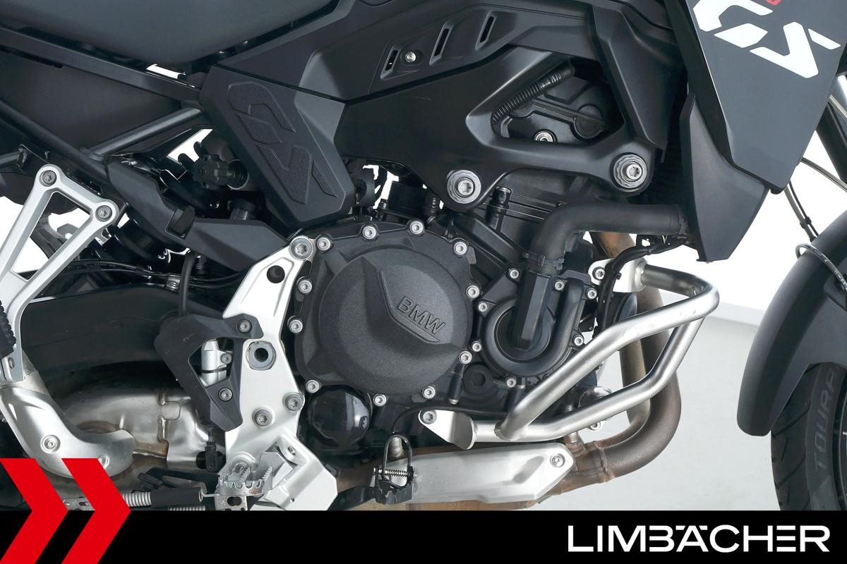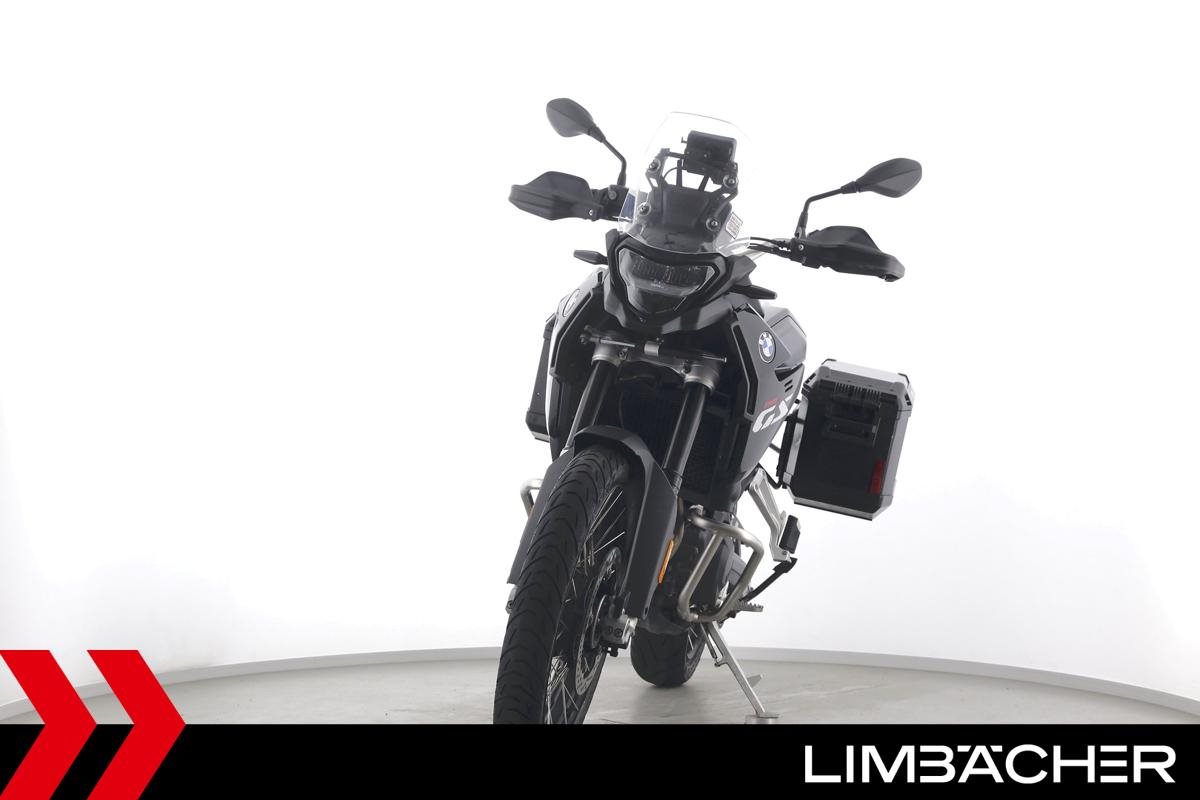 Eine scheckheftgepflegte BMW F 900 GS aus erster Hand in gebrauchtem Zustand u.a. mit Akrapovic-Endschalldämpfer sowie Hepco&Becker-Alukoffer-System.