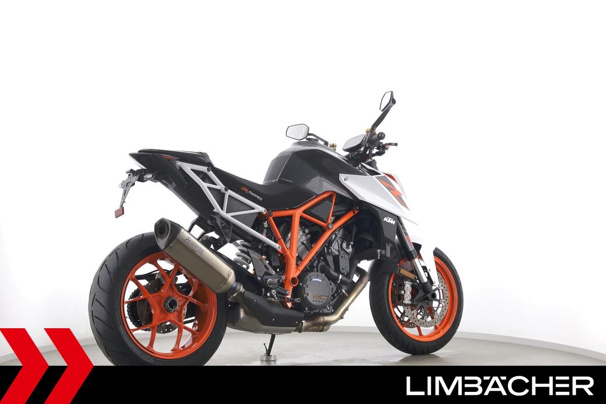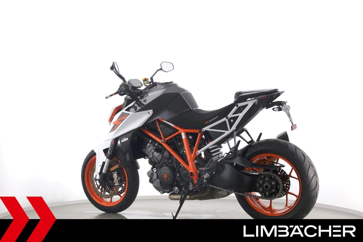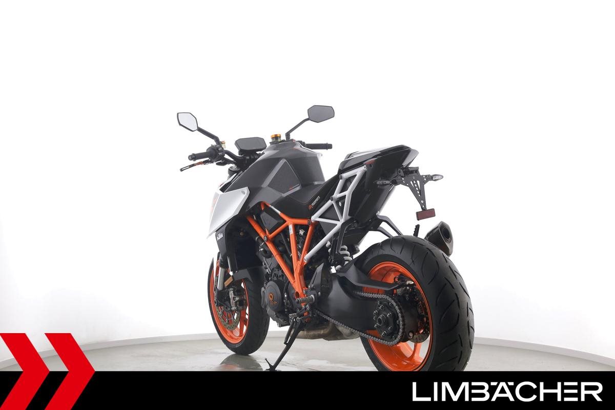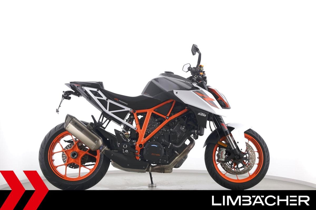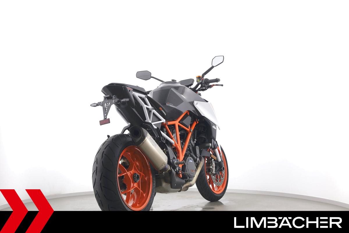 Eine KTM 1290 Super Duke R aus zweiter Hand in sehr gepflegtem Zustand u.a. mit Akrapovic-Endschalldämpfer und kurzem Kennzeichenhalter.
