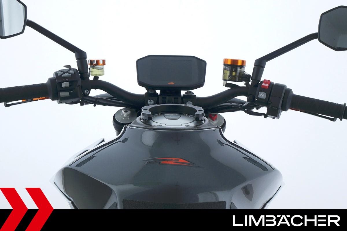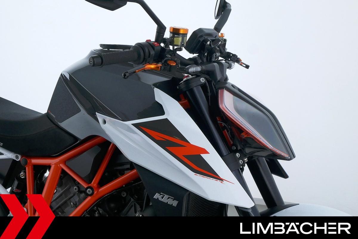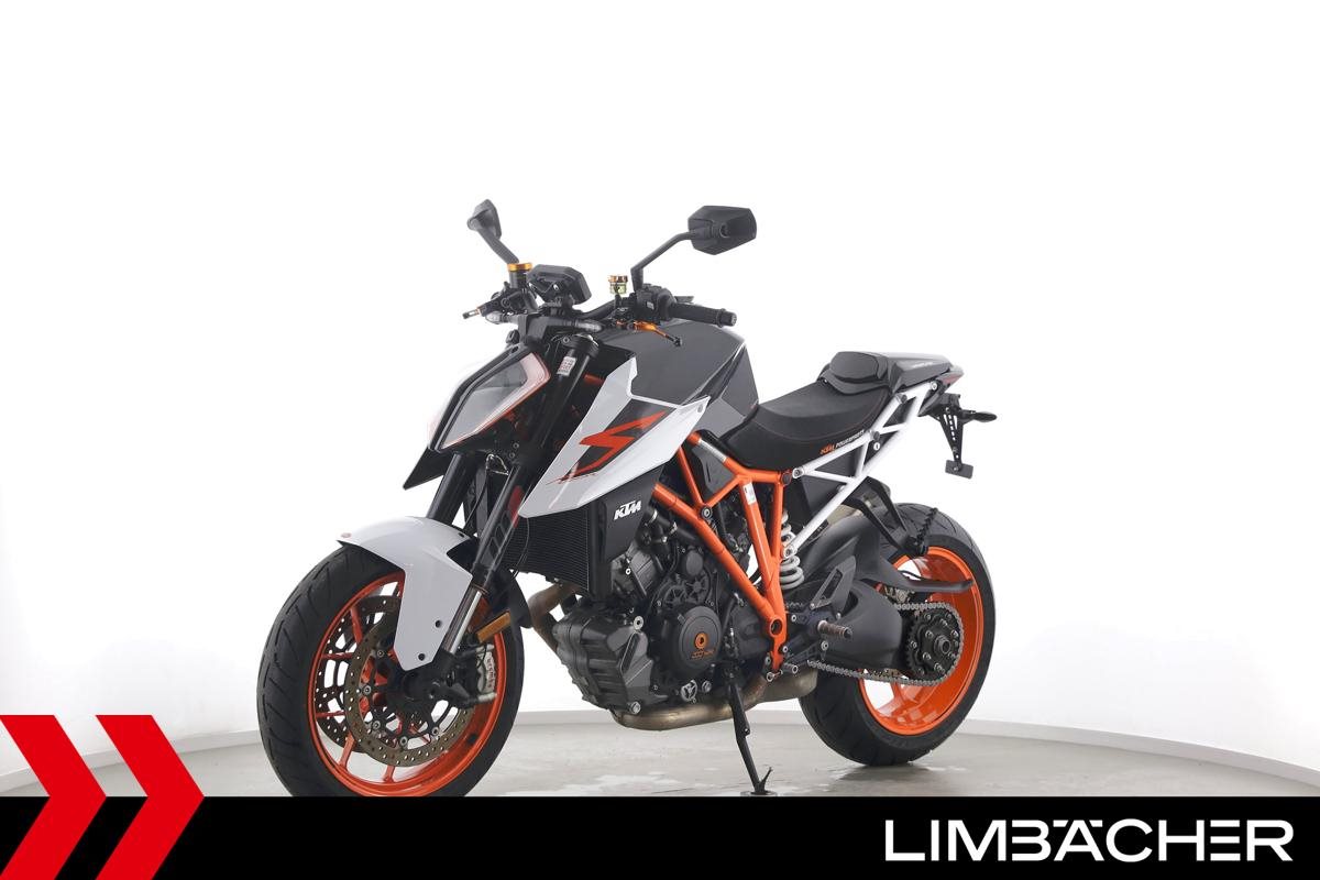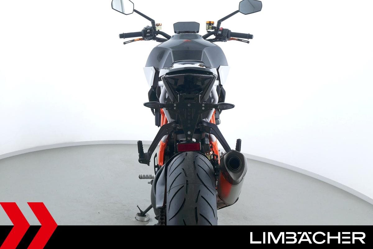 Eine KTM 1290 Super Duke R aus zweiter Hand in sehr gepflegtem Zustand u.a. mit Akrapovic-Endschalldämpfer und kurzem Kennzeichenhalter.