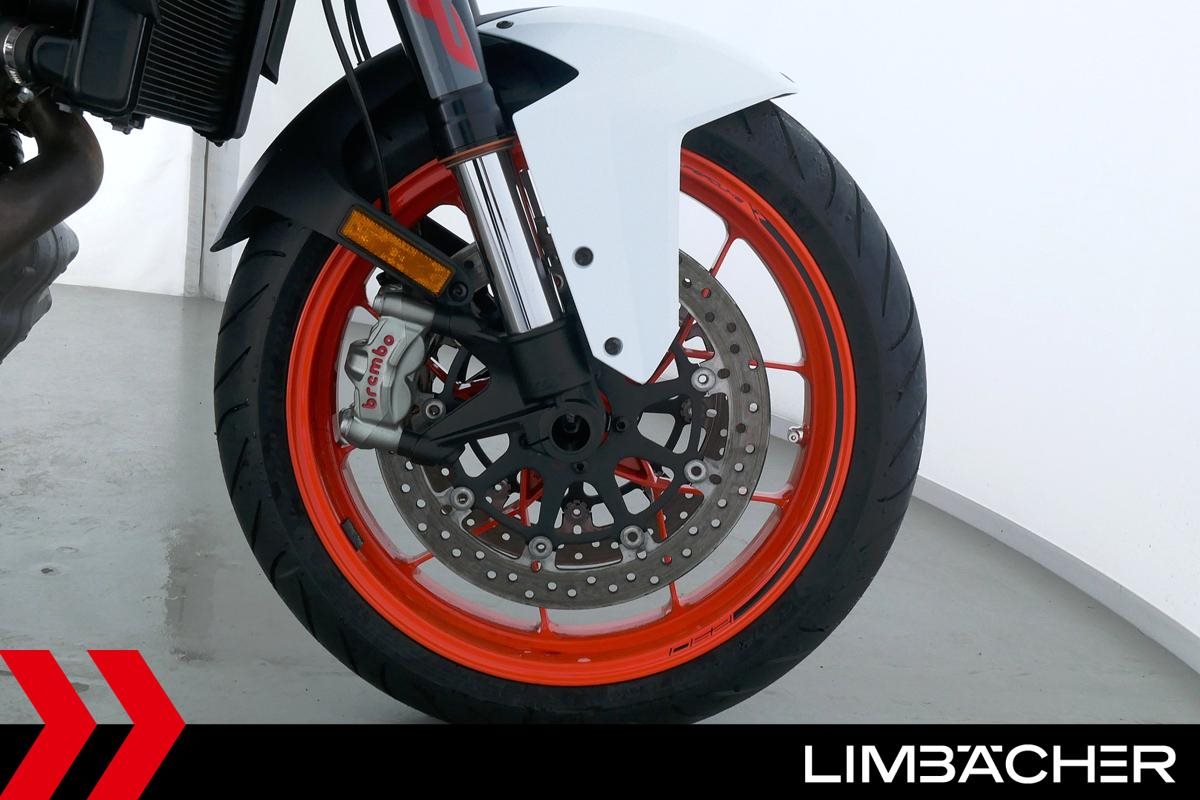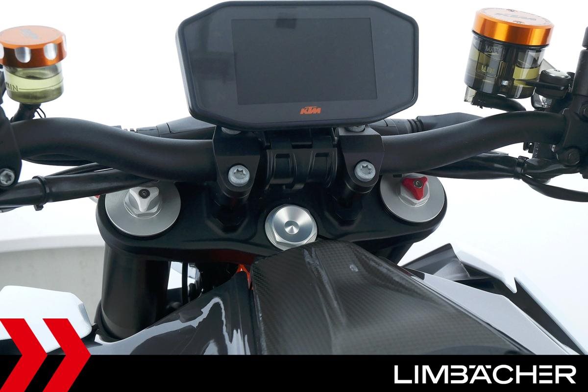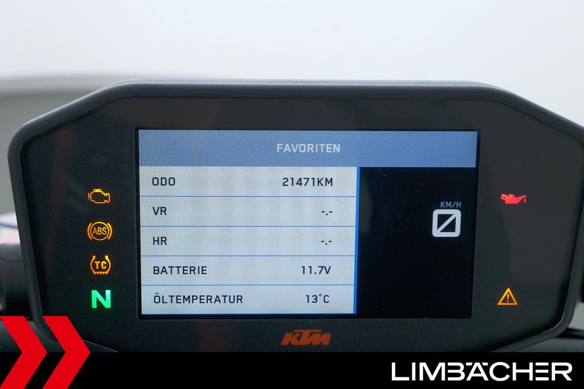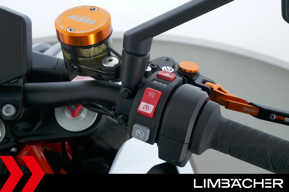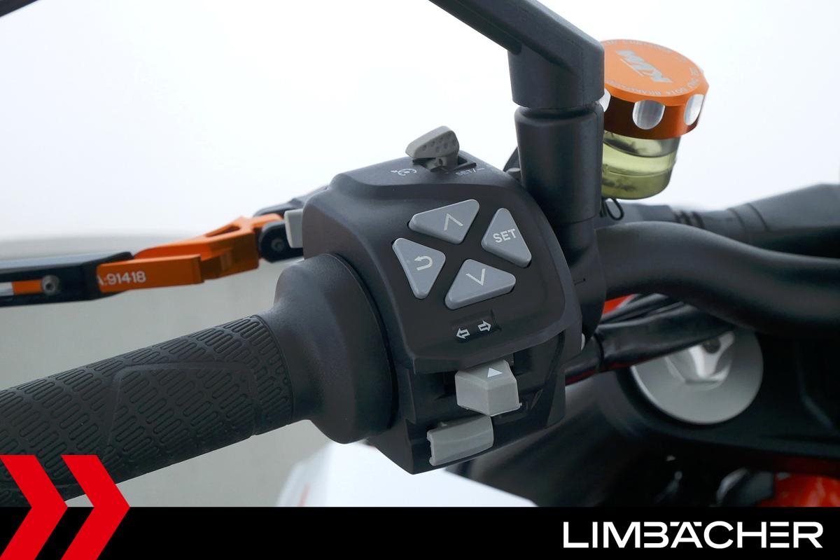 Eine KTM 1290 Super Duke R aus zweiter Hand in sehr gepflegtem Zustand u.a. mit Akrapovic-Endschalldämpfer und kurzem Kennzeichenhalter.