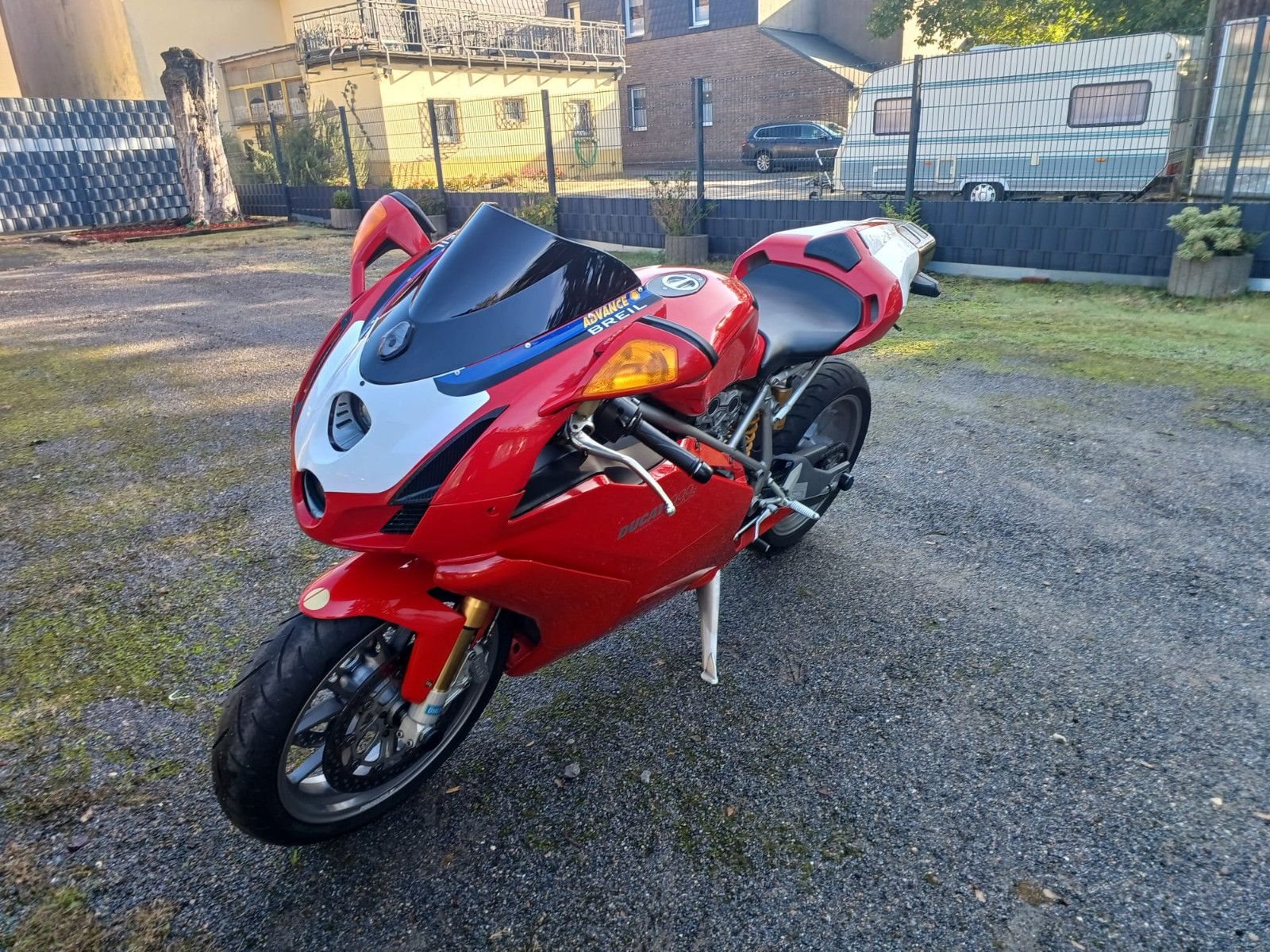 Das Motorrad wurde zuletzt von einem Ducati-Mitarbeiter gefahren und entsprechend sorgfältig behandelt und gewartet. Um- oder Unfälle sind nicht bekannt. Die vollständige Fahrzeughistorie kann jedoch nicht lückenlos belegt werden. Dem Alter entsprechend sind normale Gebrauchsspuren vorhanden, die den Gesamteindruck nicht beeinträchtigen. Verbaut ist ein Termignoni-Racing-Auspuff ohne Strassenzulassung. Der OEM-Auspuff ist nicht mehr vorhanden aber kann auf Wunsch besorgt werden. TÜV kann auf Wunsch vor Übergabe neu gemacht werden und eine Probefahrt ist nach Absprache mit rotem Kennzeichen möglich.