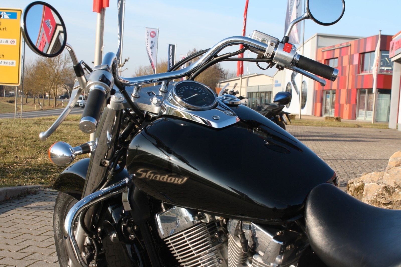 Stylischer Cruiser - die Honda VT750C Shadow in Schwarz. Ein sehr schöner Chopper mit klassischem Design und Kardanantrieb, der durch Robustheit und zuverlässige Technik überzeugt.