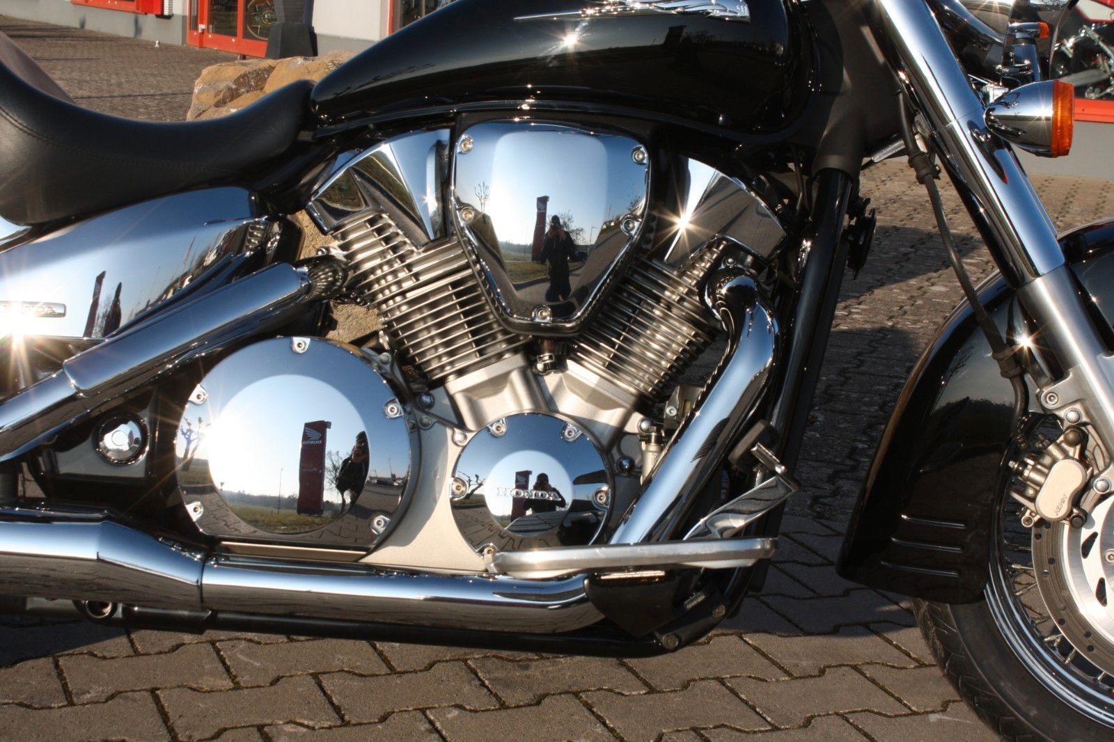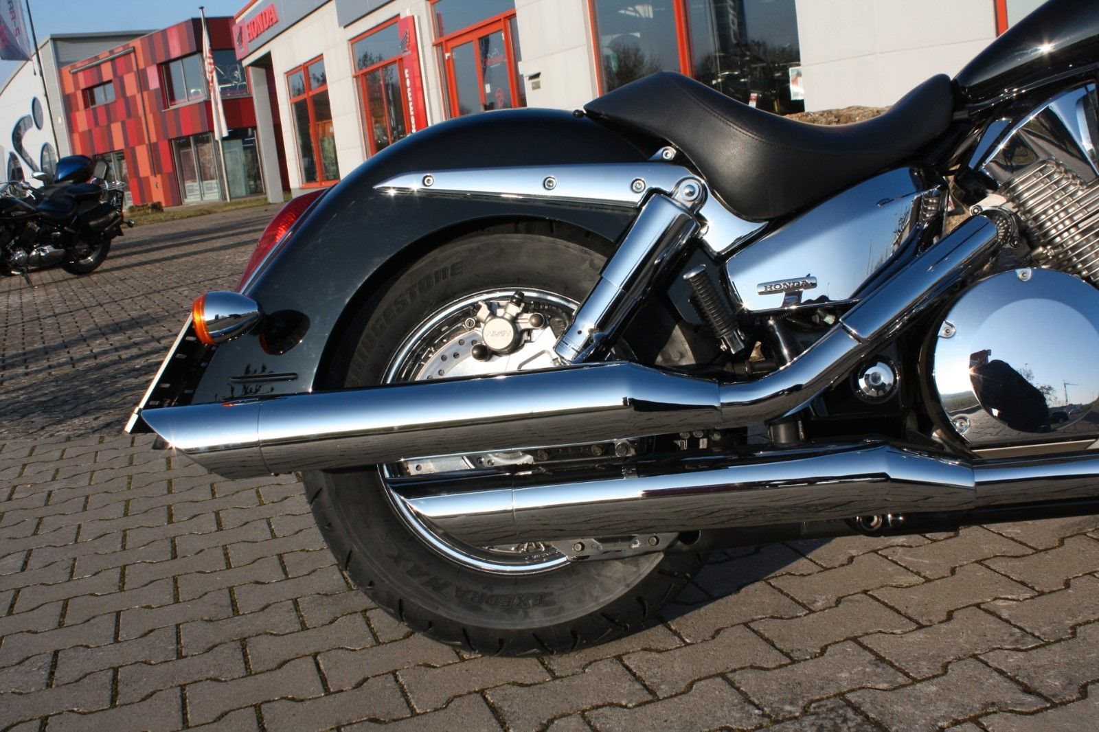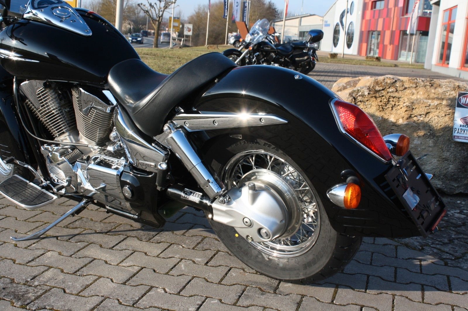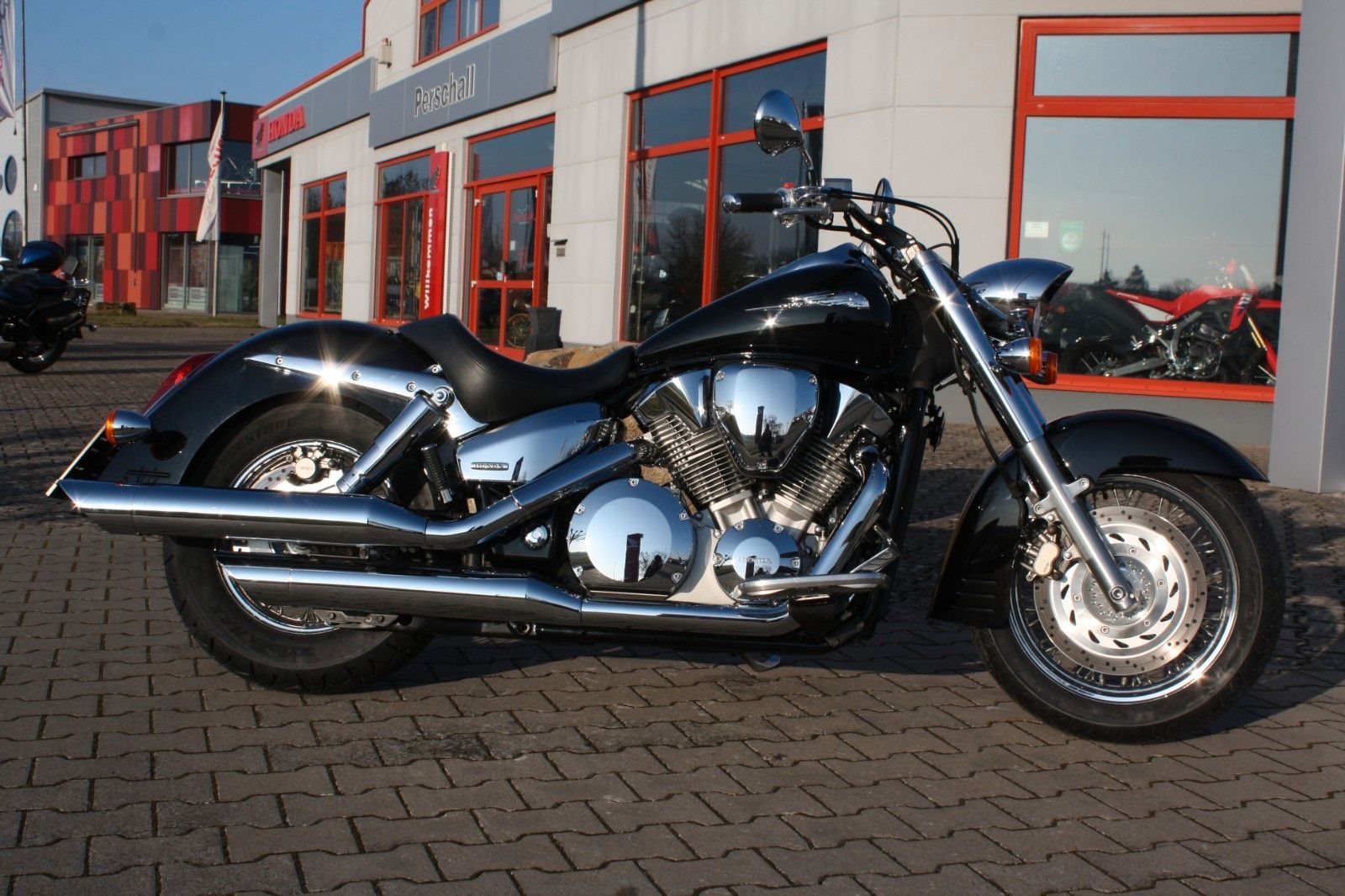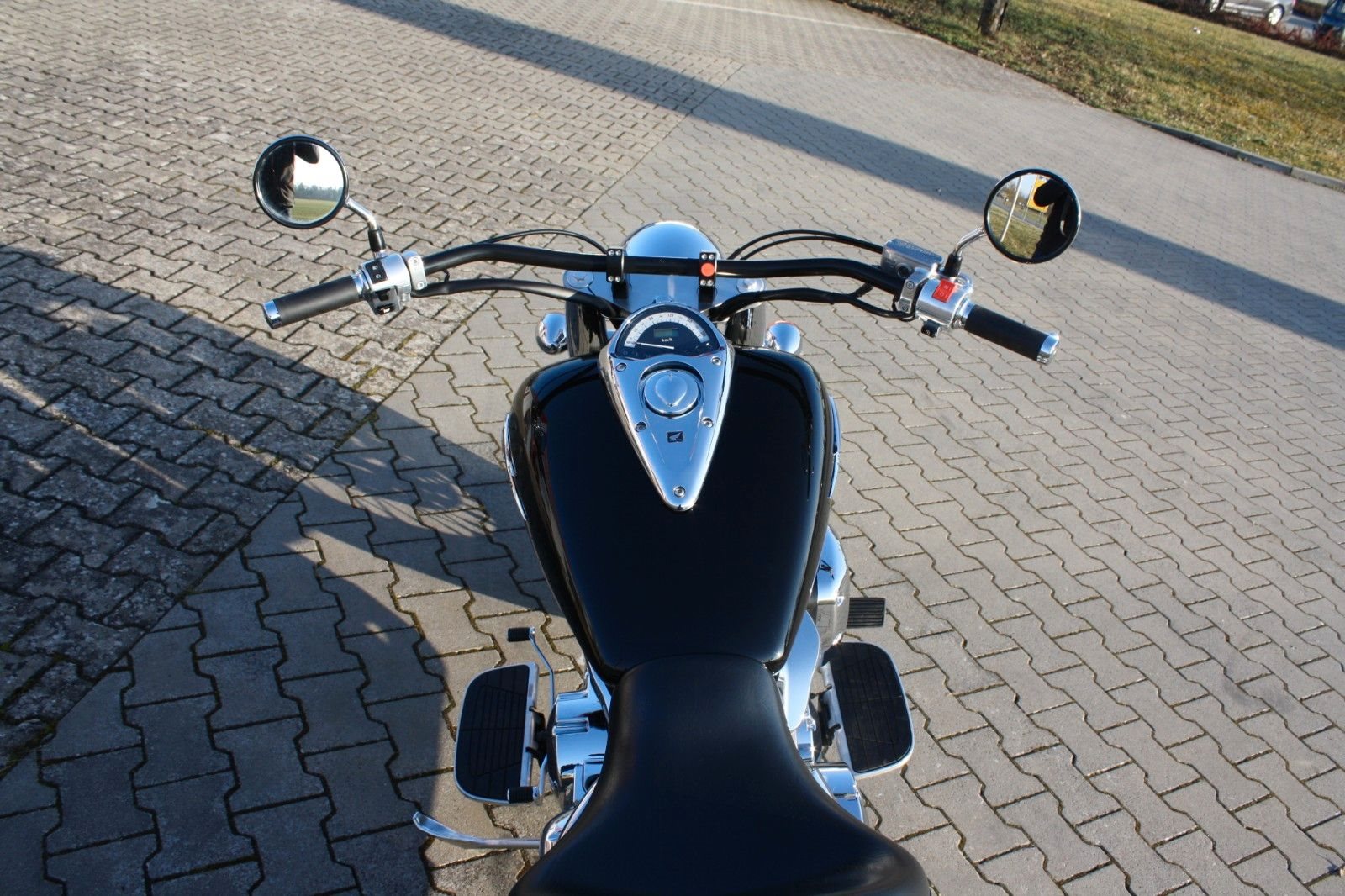 Der Jahreskundendienst ist frisch durchgeführt, beide Reifen sind neu. Ein perfekt gepflegter Chopper, bereit für jede Tour und für Fahrer, die ein stilvolles und kraftvolles Bike suchen.