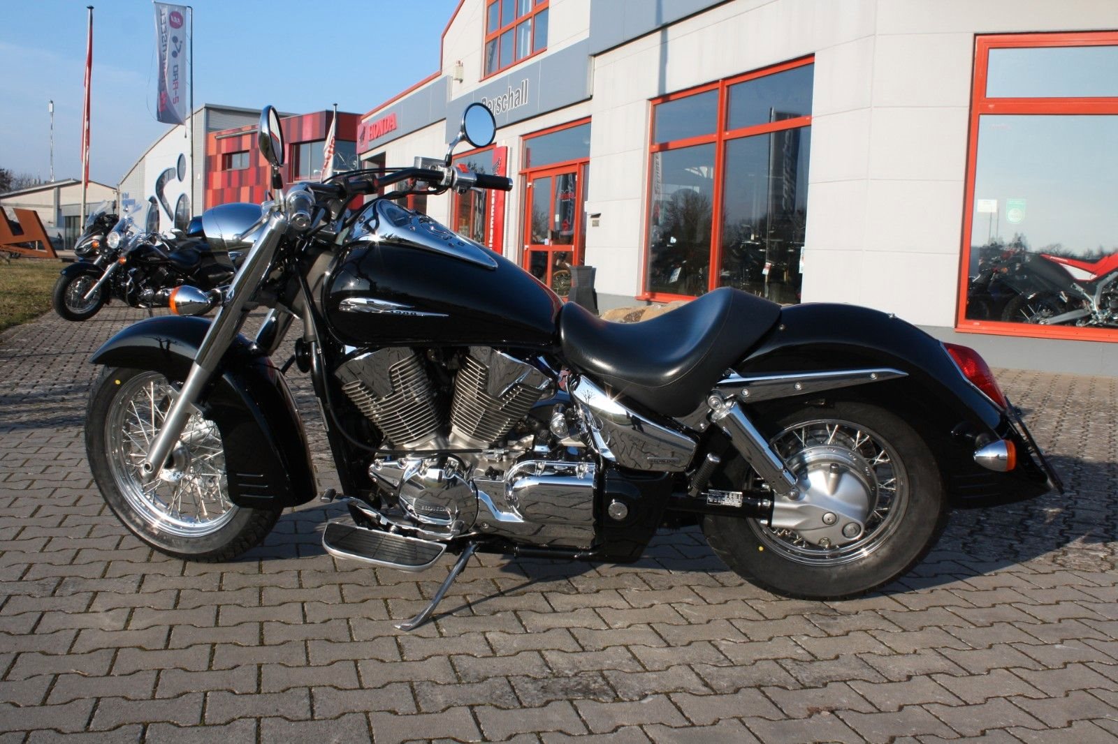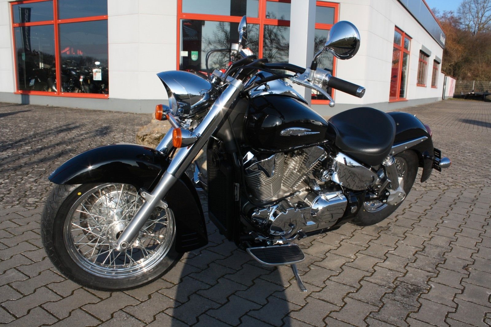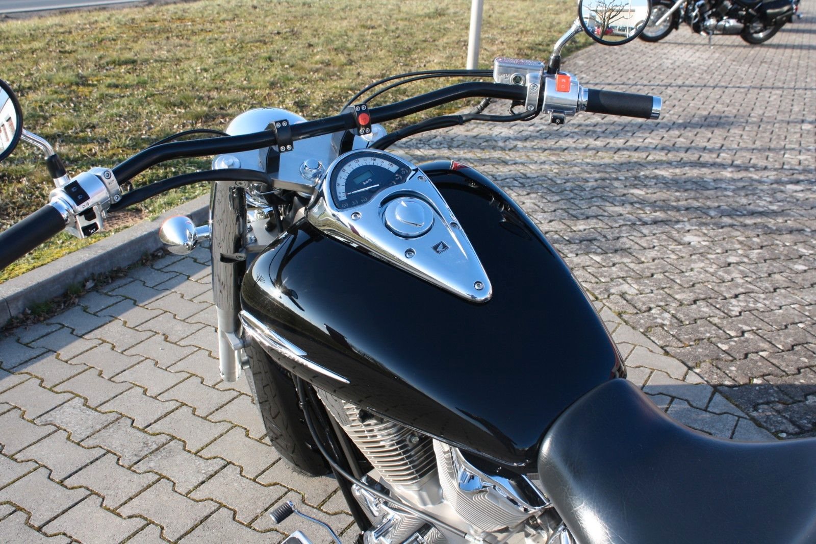 Der Jahreskundendienst ist frisch durchgeführt, beide Reifen sind neu. Ein perfekt gepflegter Chopper, bereit für jede Tour und für Fahrer, die ein stilvolles und kraftvolles Bike suchen.