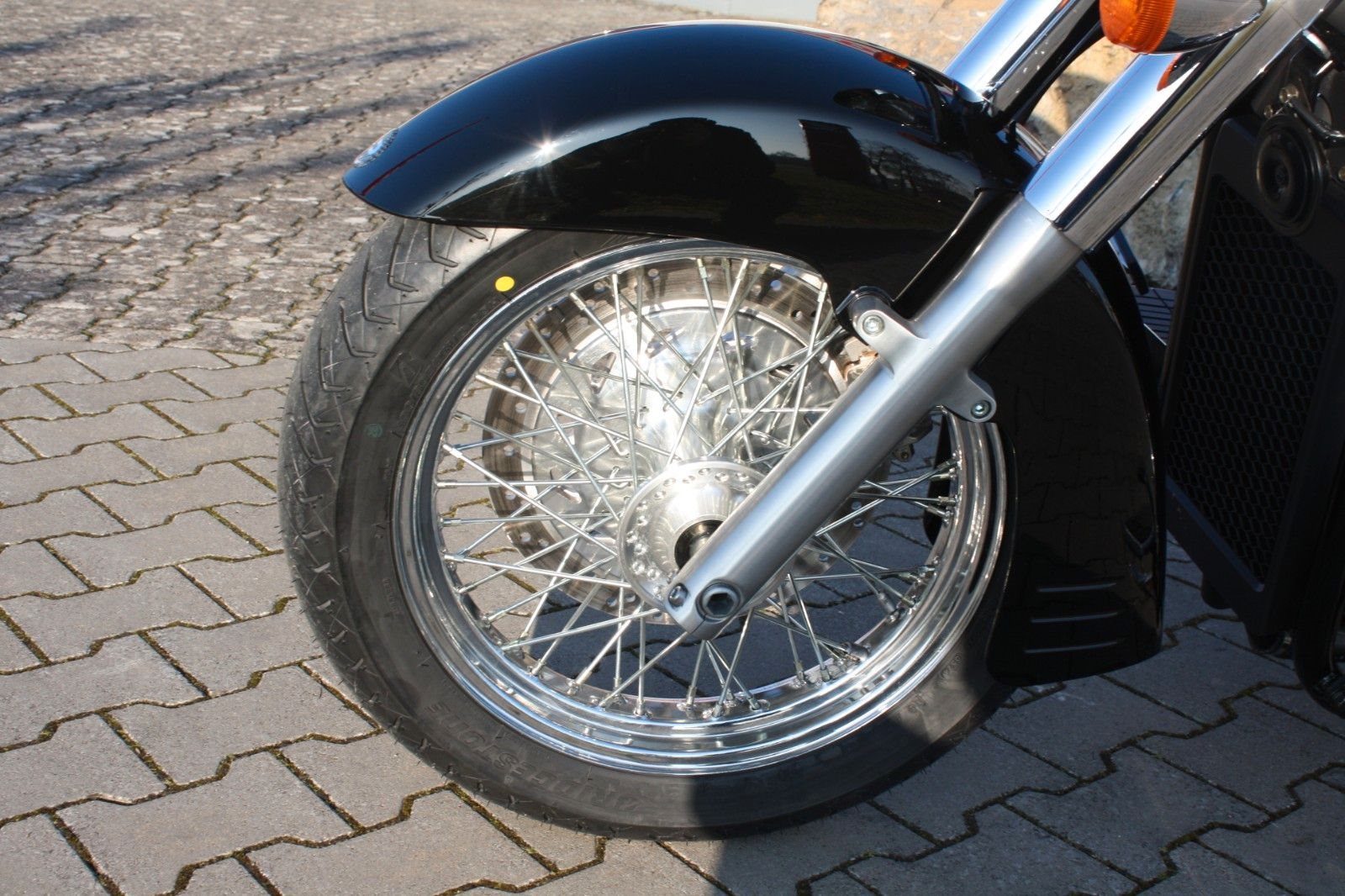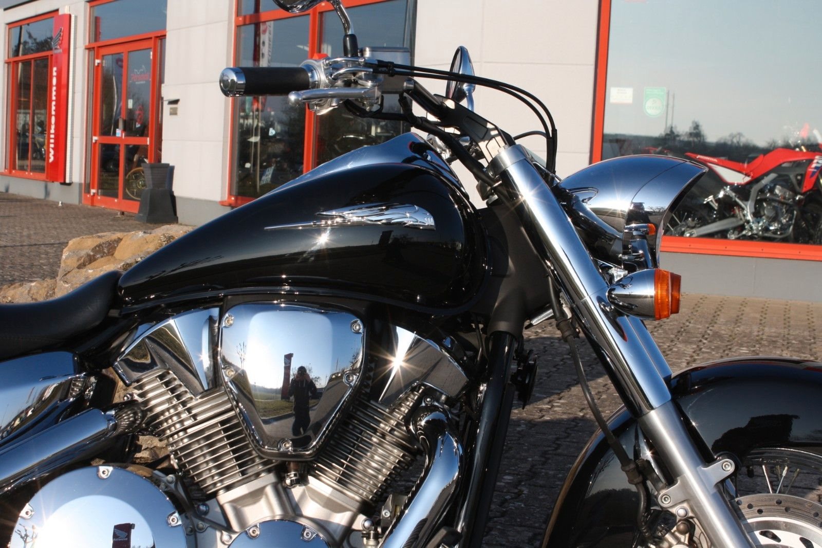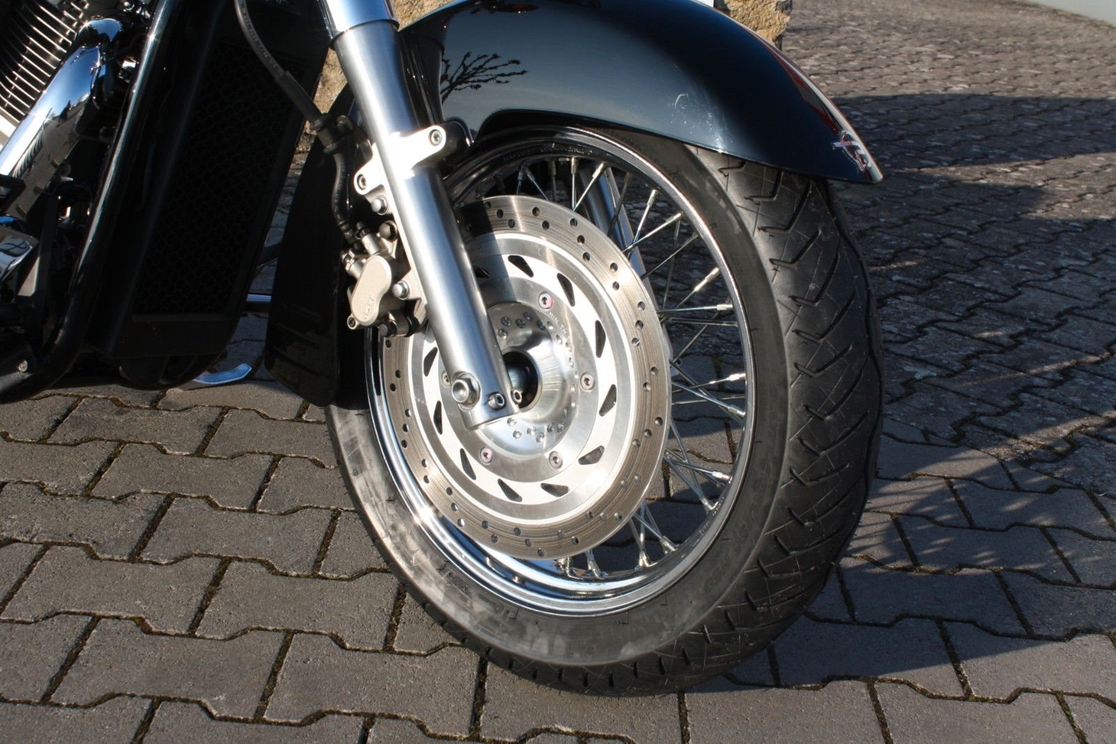 Der Jahreskundendienst ist frisch durchgeführt, beide Reifen sind neu. Ein perfekt gepflegter Chopper, bereit für jede Tour und für Fahrer, die ein stilvolles und kraftvolles Bike suchen.