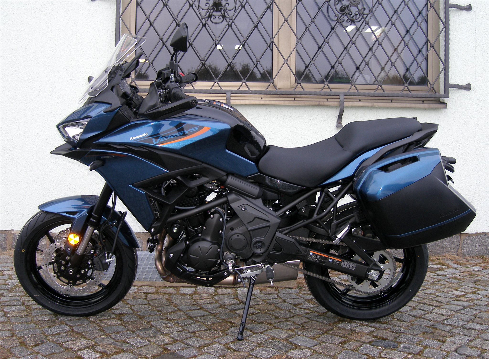 Die Versys 650: Geschaffen, um die Stadt zu erobern oder weit hinter sich zu lassen. Mit der Versys 650 starten Pilot, Sozius und Gepäck in das nächste große Abenteuer. Funktionen wie eine verstellbare Windschutzscheibe, ein TFT-Farbdisplay mit Bluetooth-Verbindung, LED-Beleuchtung und die KTRC-Traktionskontrolle sorgen für Genuss auf jeder Fahrt. Der Weg zur Arbeit oder der Wochenendausflug: die Versys 650 ist die ideale Begleiterin.