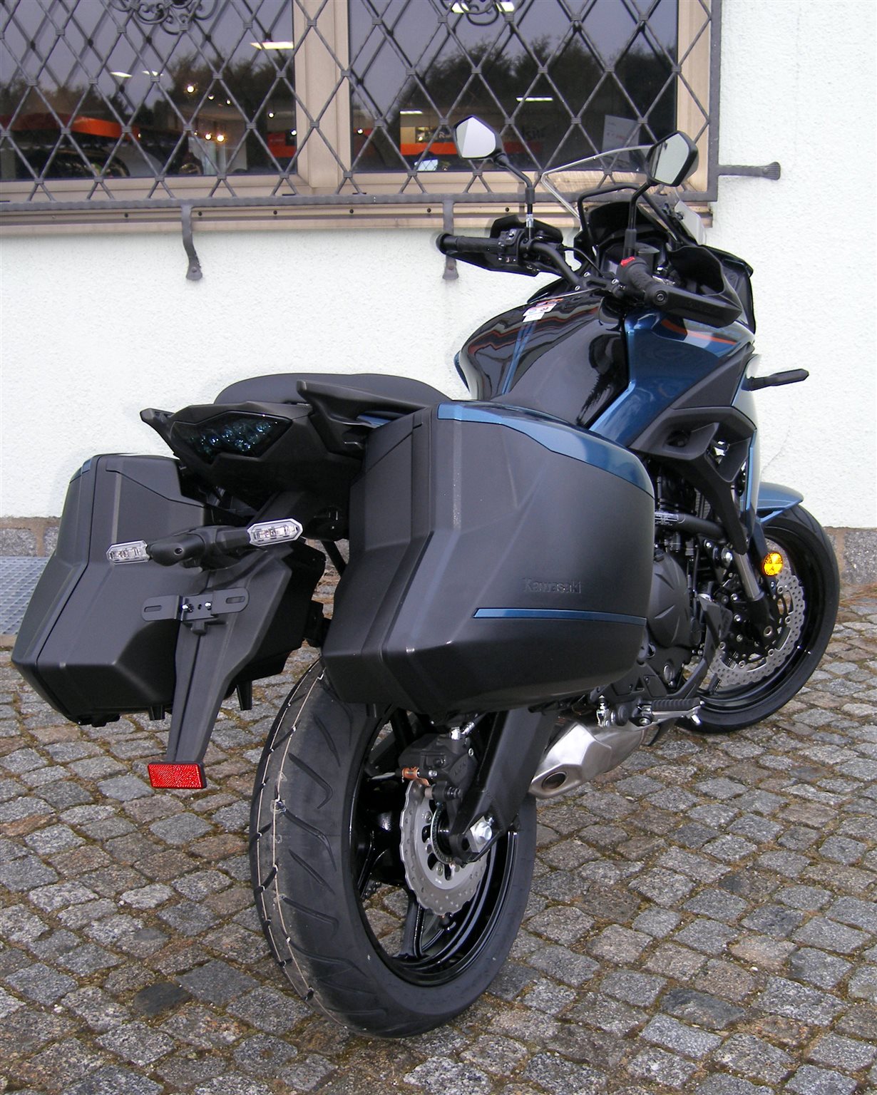 Das Tourerpaket beinhaltet die seitlichen Koffer in Fahrzeugfarbe, mit Innentaschen und Gleichschließsystem, Handprotektoren, Tankpad und der Display Schutzfolie.