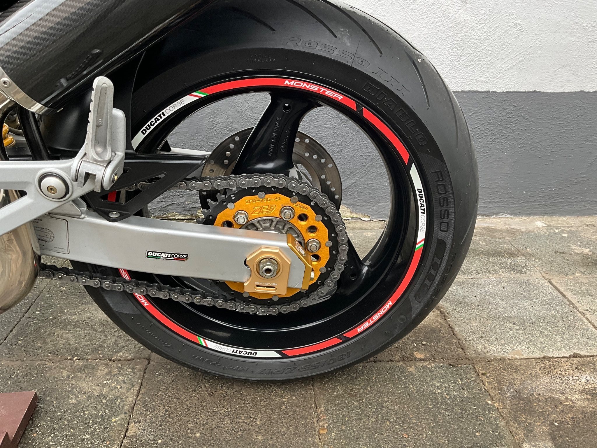 Technik/Zubehör: Spark-Carbon-HighUP Auspuff, Lithium-Ionen-Batterie, Rizoma Druckplatte, Kupplungsdruckzylinder (gold)