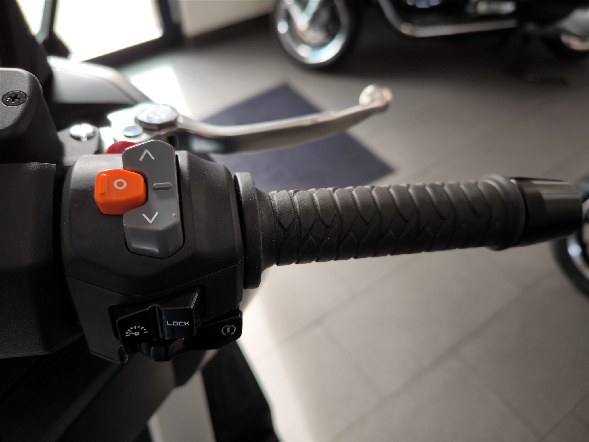 Das Kurven-ABS plus Advanced Intelligent Braking System geben Sicherheit, wenn es sportlich wird und das vollelektrisch verstellbare Windschild schützt vor Winddruck und Wetter. Auch der Komfort bleibt nicht auf der Strecke: Beheizbare Griffe und eine integrierte Rückenlehne machen selbst lange Fahrten angenehm und dank Keyless-System startet der Roller bequem auf Knopfdruck, ganz ohne Schlüssel.