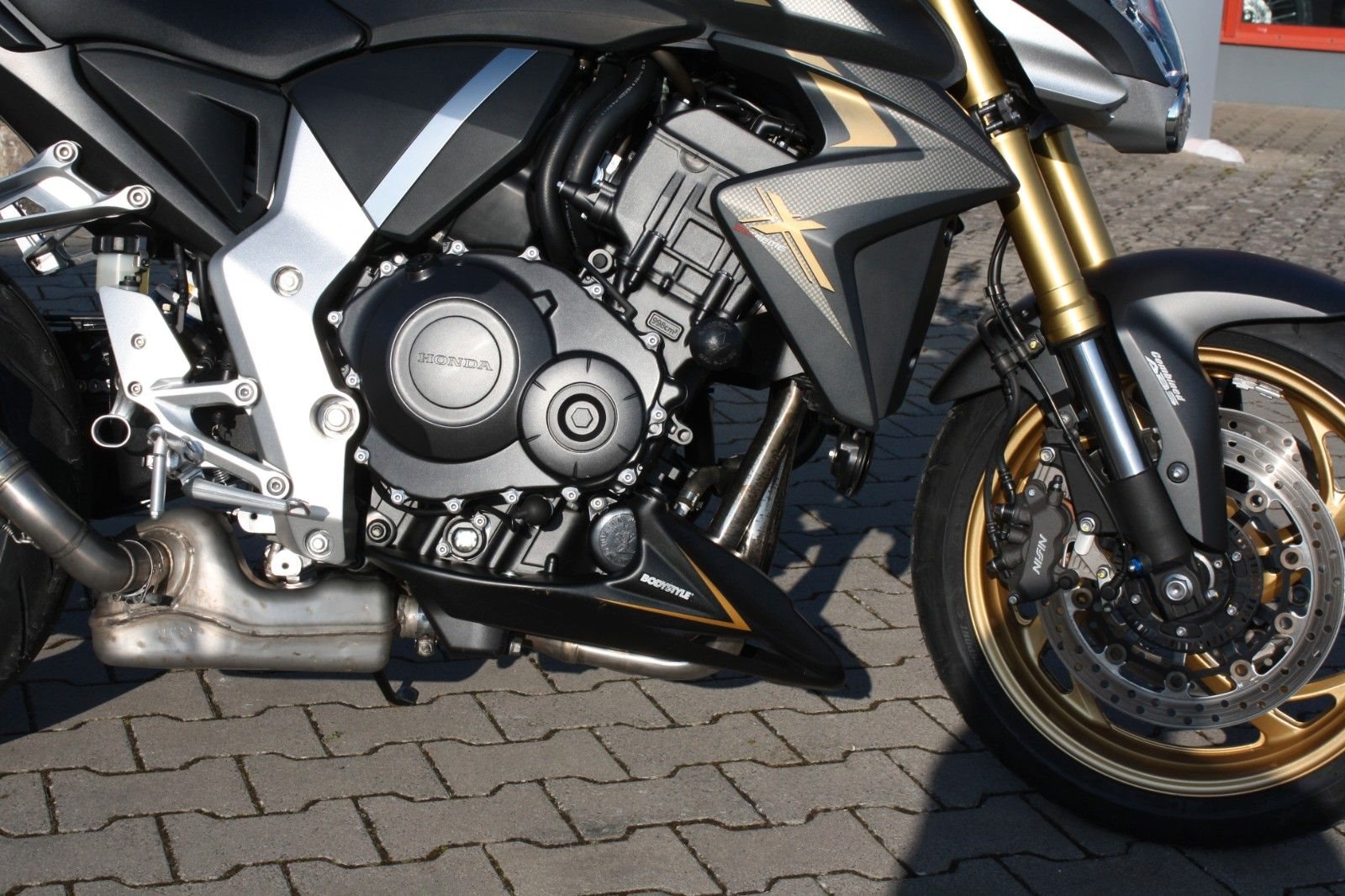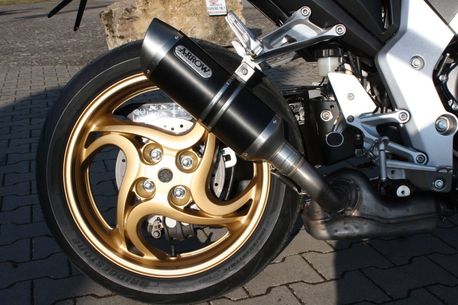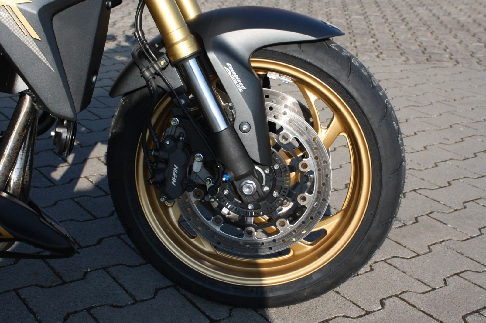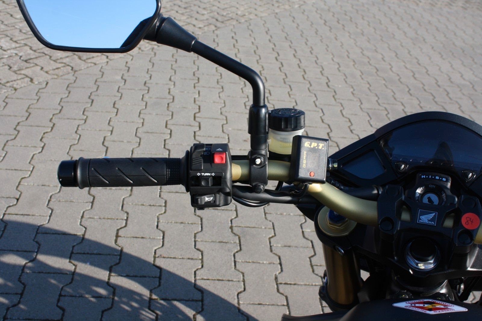 Das Bike ist sehr umfangreich ausgestattet: Ganganzeige, Sturzpads, Bugspoiler, kurzer Kennzeichenträger, vier LED-Mini-Blinker sowie ein zugelassener Sportauspuff von Arrow. Beide Reifen sind neu. Mit ordentlich Drehmoment bietet die CB 1000R ein sportliches Fahrerlebnis und puren Fahrspaß.
