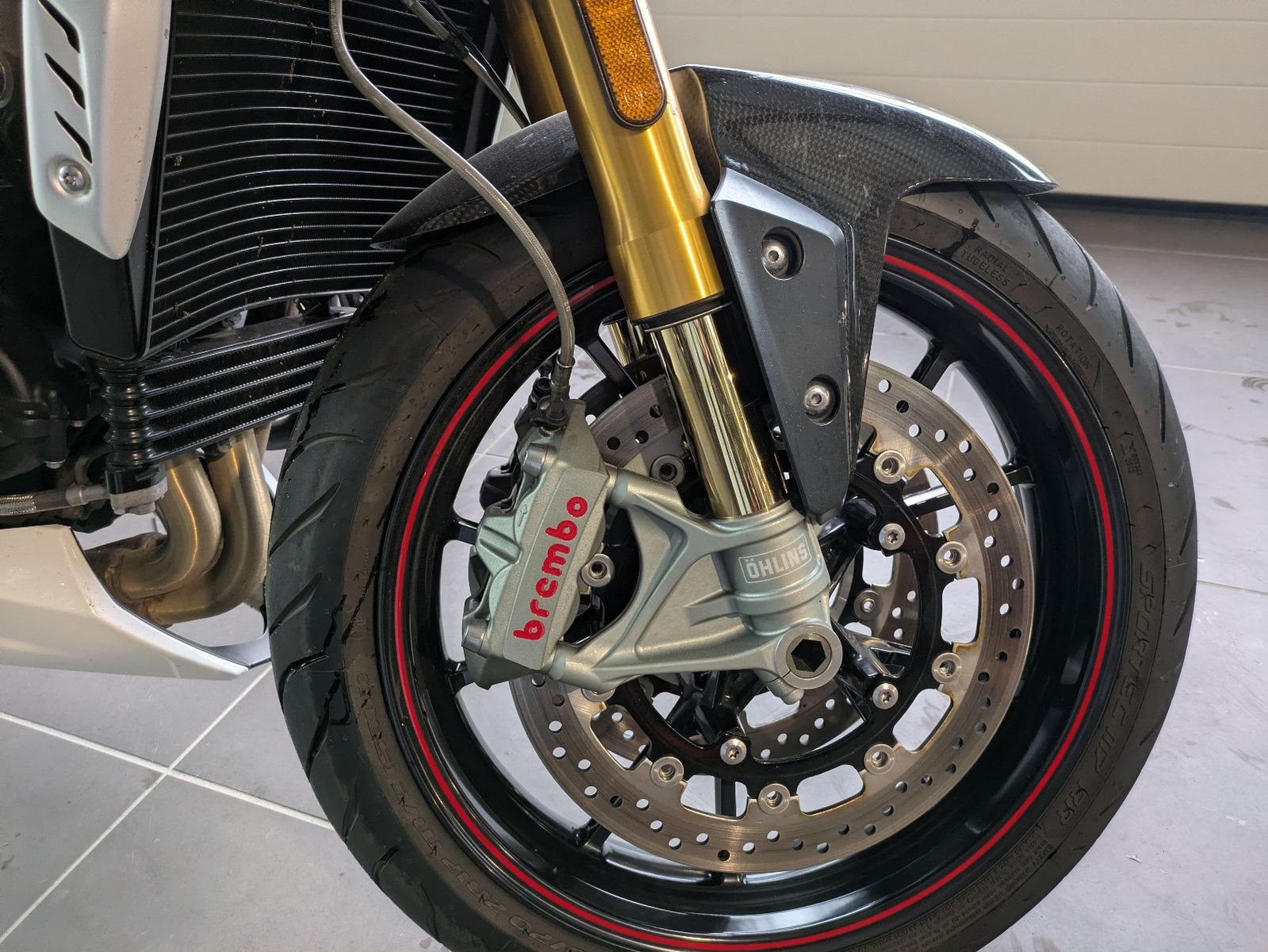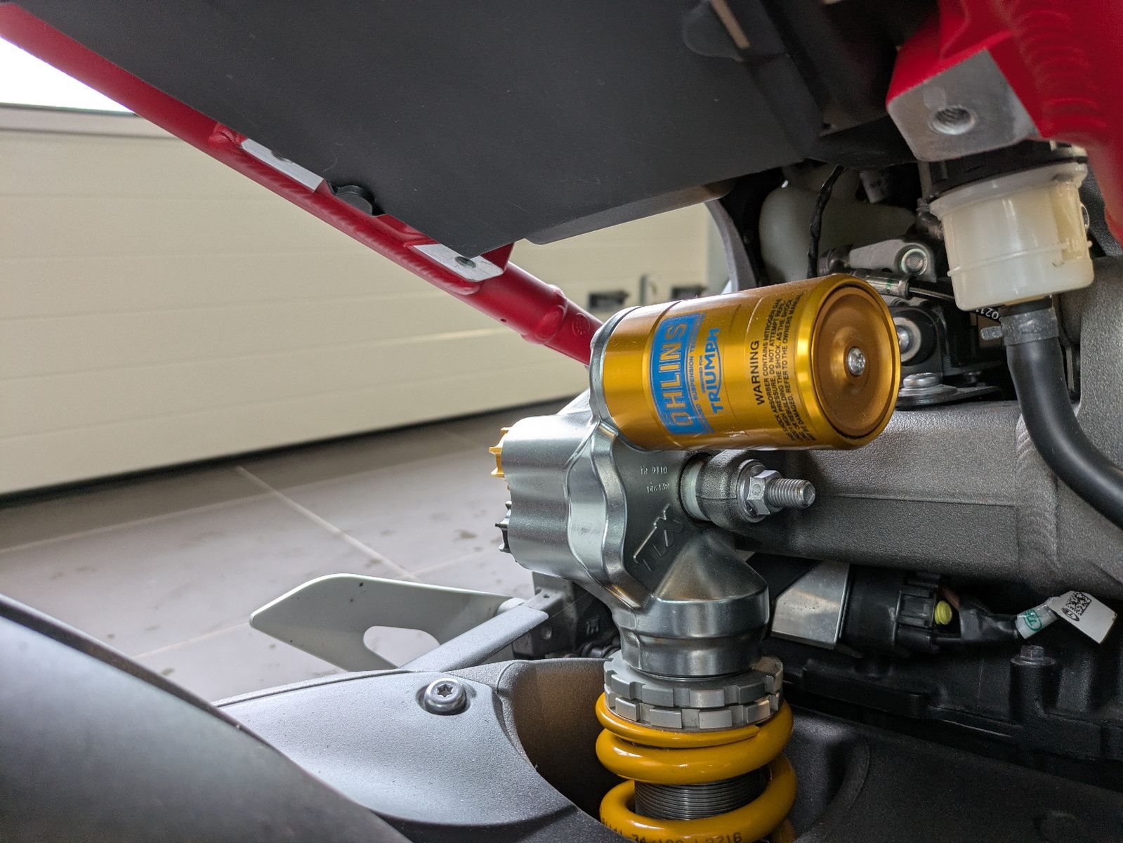 Von Werk aus sind Öhlins Fahrwerkskomponenten & Brembo Bremssättel verbaut.