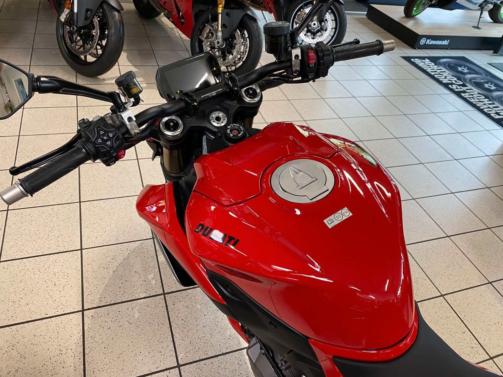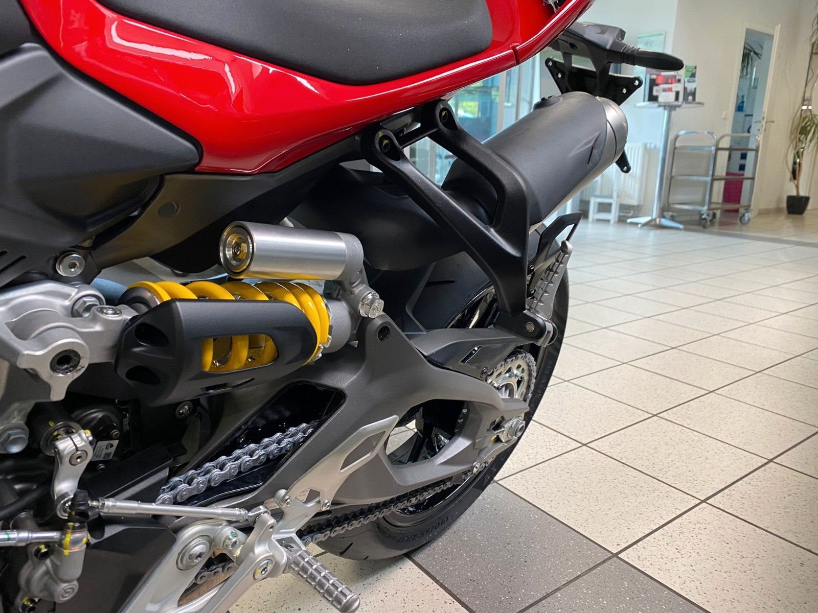 Ducati Quick Shift (DQS) Up/Down 2.0, Voll-LED-Scheinwerfer mit Daytime Running Light (DRL), automatische Blinkerrückstellung, Coming-Home-Funktion, Soziussitz und -fußrasten, Sachs-Lenkungsdämpfer