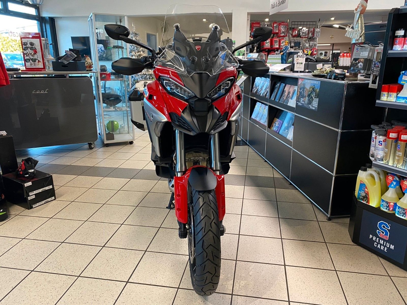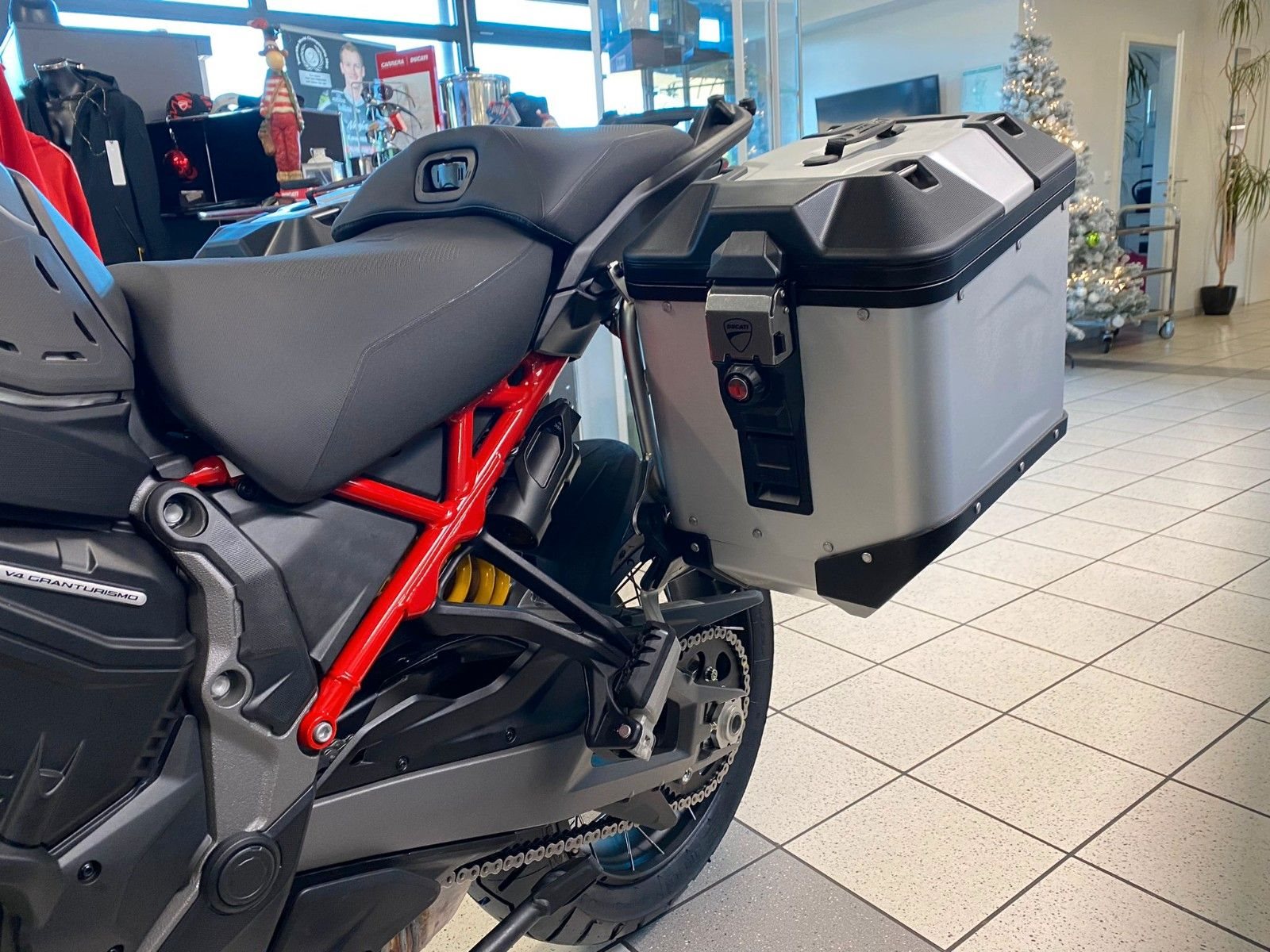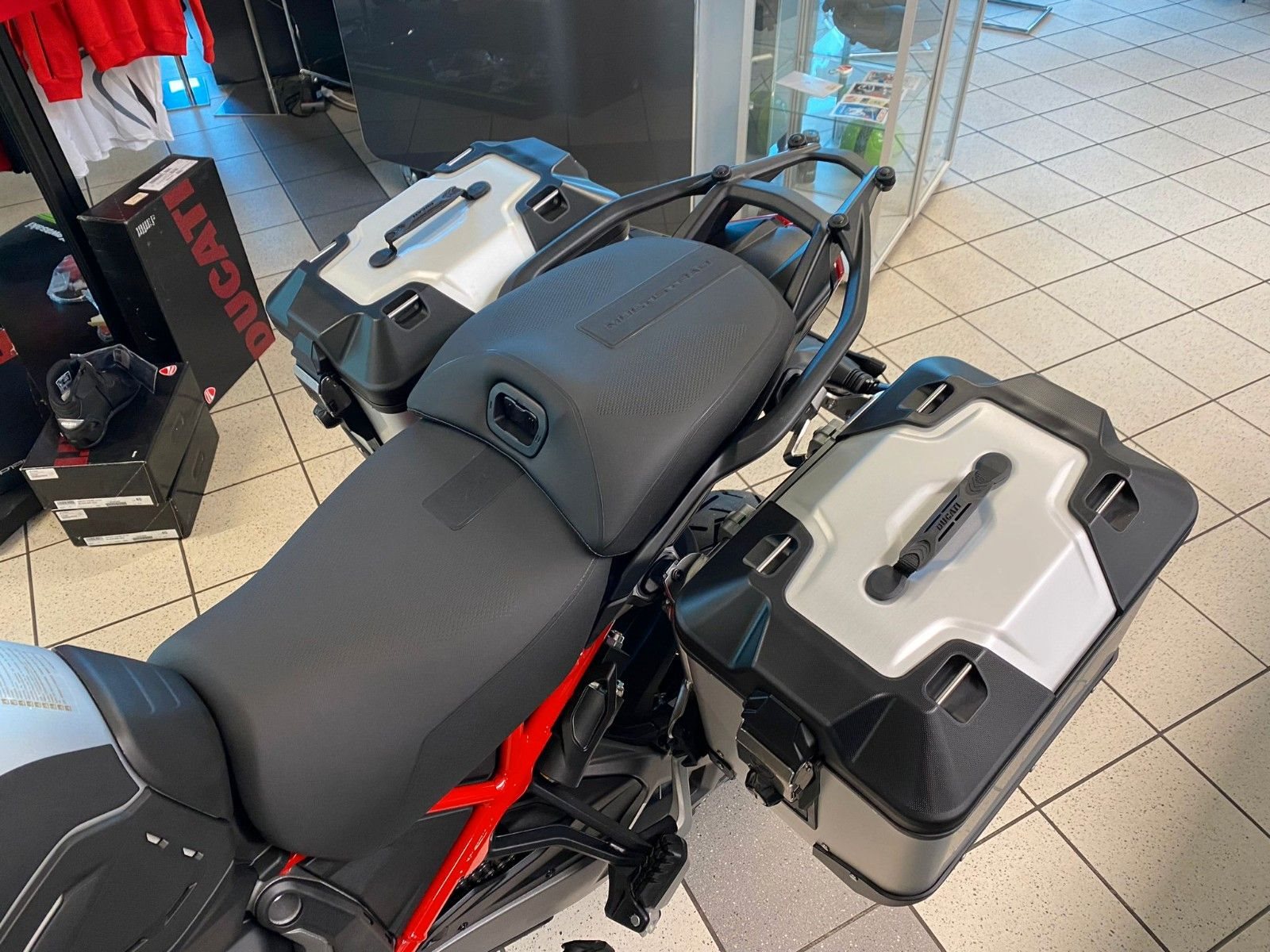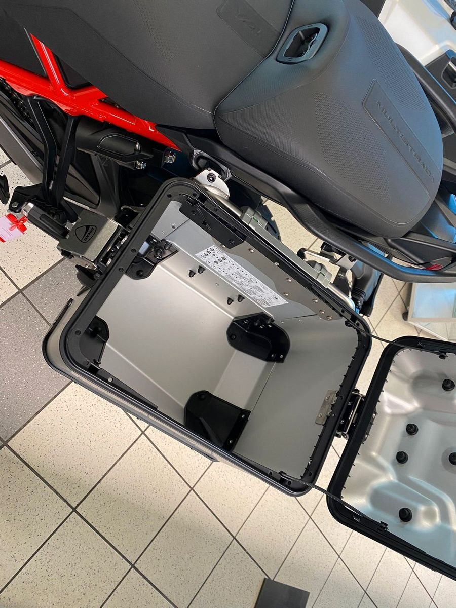 Ducati Quick Shift (DQS) Up/Down 2.0, Ducati Skyhook Suspension, Coming-Home-Funktion, TFT-Farbdisplay, erweiterte Deaktivierungs-Strategie (Extended Cylinder Deactivation - ECD), Hands-Free, Voll-LED-Beleuchtung, Voll-LED-Scheinwerfer, Daytime Running Light (DRL), automatische Blinkerrückstellung, Heizgriffe, Minimum Preload, Karten-Navigation, 12V-Steckdose, USB-Anschluss, beleuchtete Bedienelemente, Tyre Pressure Monitoring System (TPMS), Radarsystem (Adaptive Cruise Control, Forward Collision Warning, Blind Spot Detection)